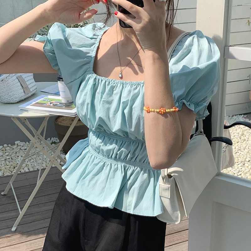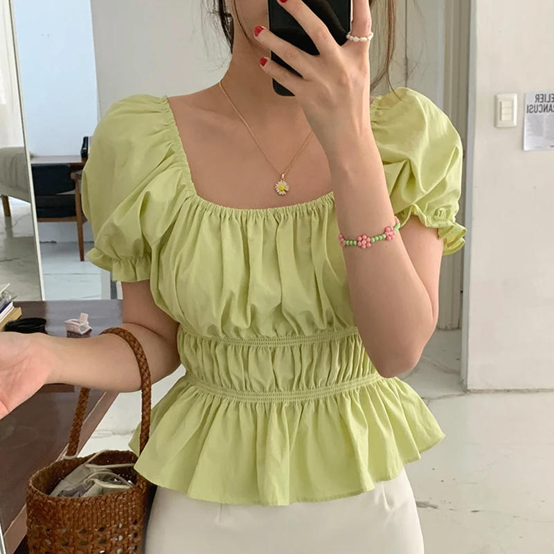 Женская блузка с коротким рукавом Gaganight Harajuku, шифоновая блузка с отложным воротником в Корейском стиле, лето 2020