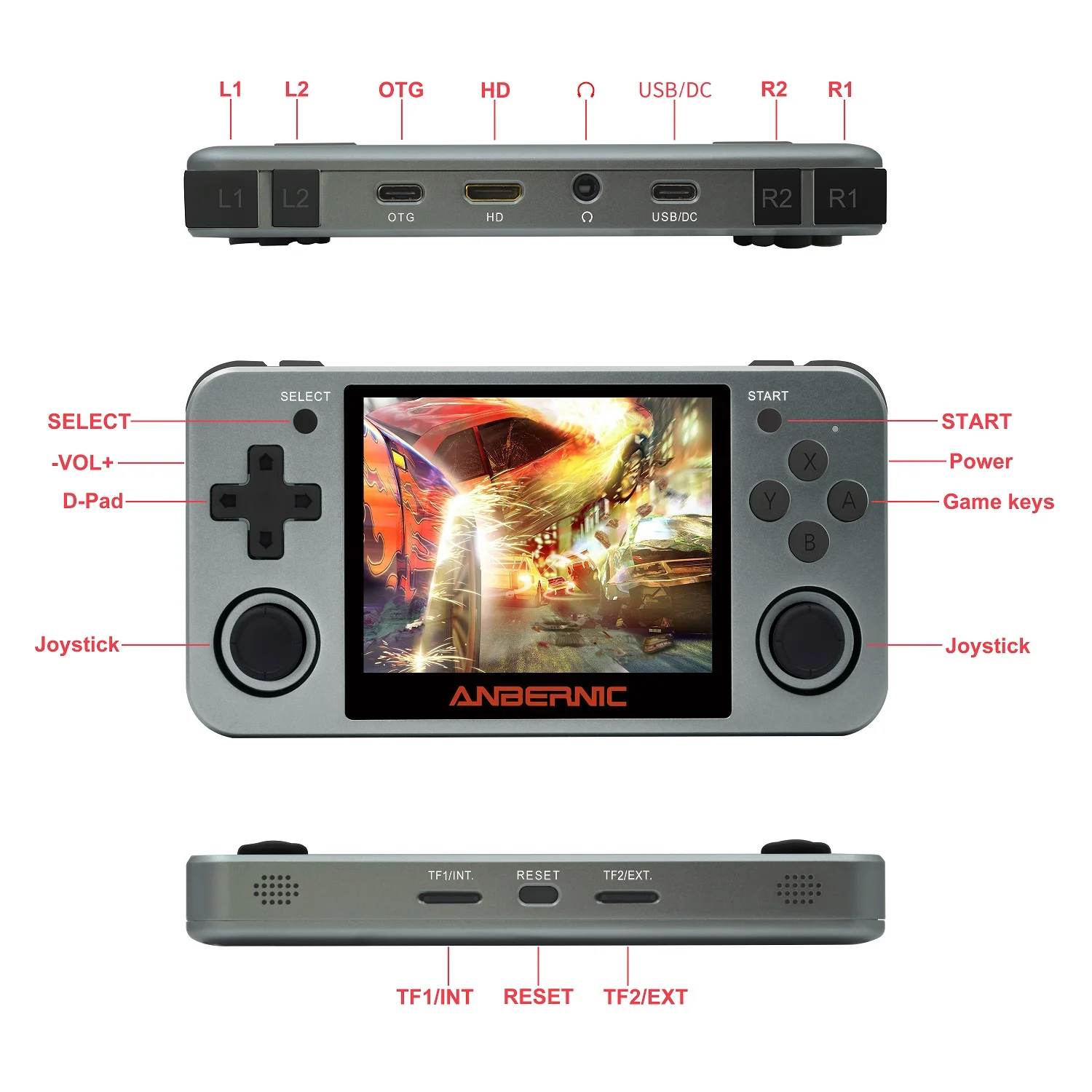 Цвет: космический серый/Космический Серебряный/розовое золото Материал: корпус из алюминиевого сплава S Экран: 3,5 дюймов IPS Экран, полная ламинация/640*480 CPU:4770 dual 1,0 GHz Оперативная память: DDR2 512M Память: 16 Гб Функция: Opendingux/музыка/видео Музыкальная функция: высококачественный динамик, поддержка lossless music/APE/MP3/WMA/DRM WMA /OGG/APE/FLAC/WAV/AAC (в том числе AAC-LC/AAC HE/AAC + V1/V2) и другого полноформатного аудио. Игры: Поддержка вибрирующих игр и идеальная поддержка PS1, CPS1, CPS2, FBA, NEOGEO, NEOGEO POCKET, GBA, GBC, GB, SFC, FC, MD, SMS, GG, Handy MSX, PCE, WSC, POKE MINI, игры для трансплантации и т. д. 20 видов форматов игр. Скорость игры 1: 1, 60 Гц. Клиент также может загрузить больше игр с веб-сайта самостоятельно. Язык: английский и китайский Функция электронной книги: поддержка PDF,TXT ,RTF ,DOC,HTML Динамик: высококачественный двойной звуковой стерео динамик Аккумулятор: литий-полимерный 2500 мАч, срок службы 6 часов. Tf-карта: Поддержка tf-карты до 256 ГБ Аксессуары: usb-кабель для зарядки, Подарочная коробка, руководство пользователя