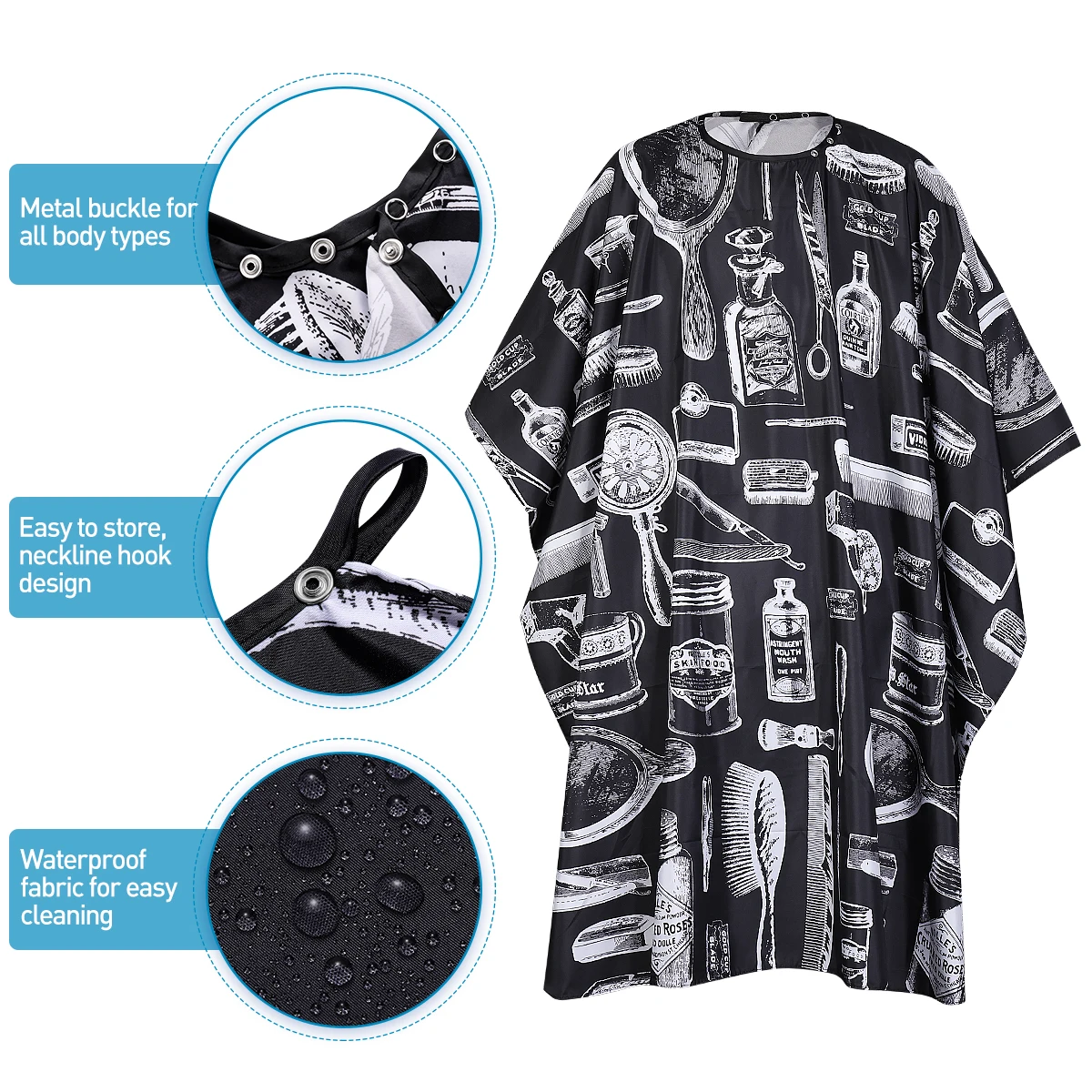 -Накидка для салона изготовлена из высококачественного полиэстера, что предотвращает появление пятен при стрижке или выцветании волос.