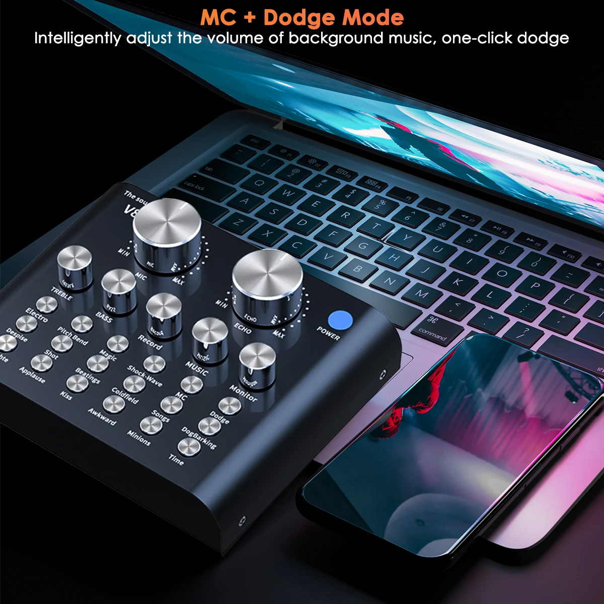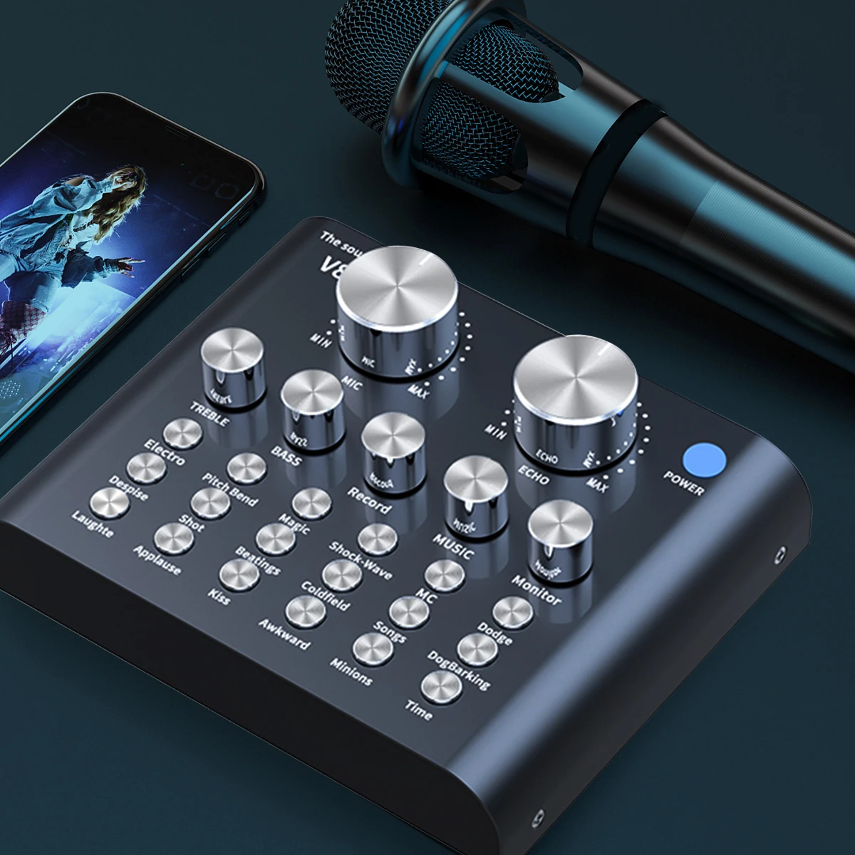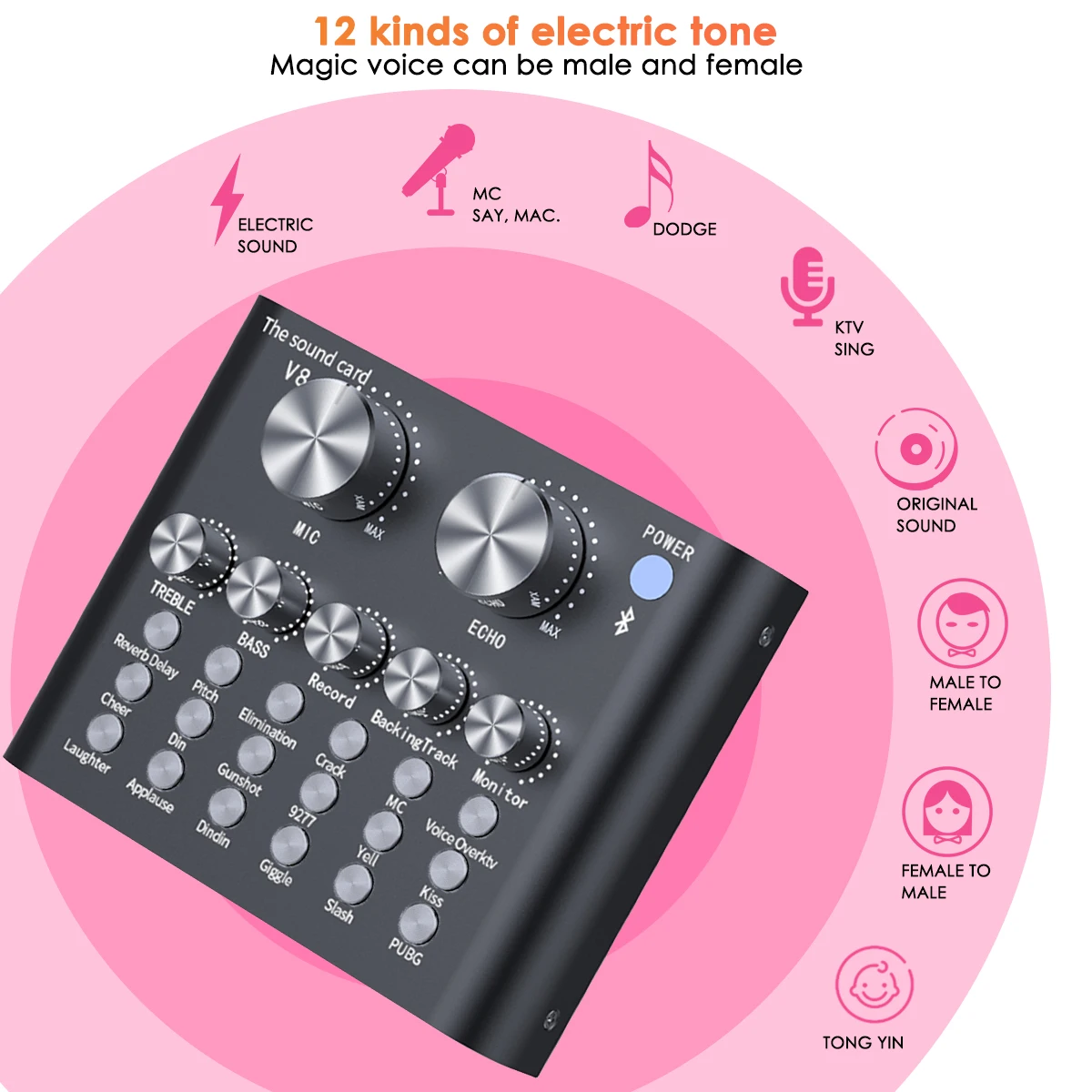 Двухканальная внешняя звуковая карта V8 USB с 12 видами электроакустических и MC