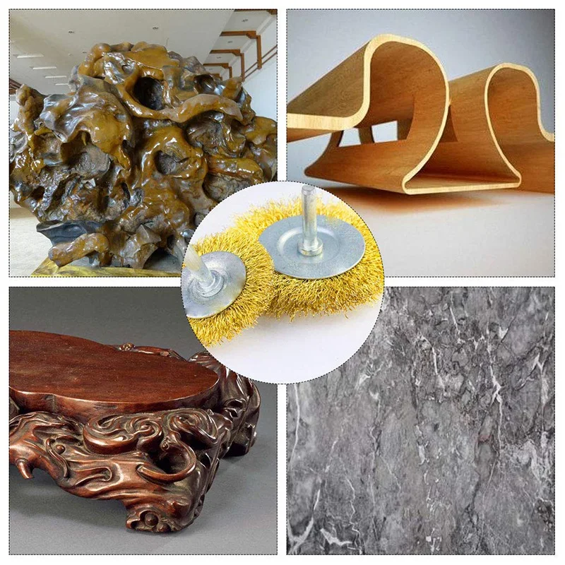 Широко применяется для: Эти покрытые латунные проволочные щетки изготовлены из прочного латунного материала, идеально подходят для машинного удаления коррозионной краски и полировки, также подходят для кораблей, авиации, автомобилей, нефти, строительства и других отраслей промышленности.