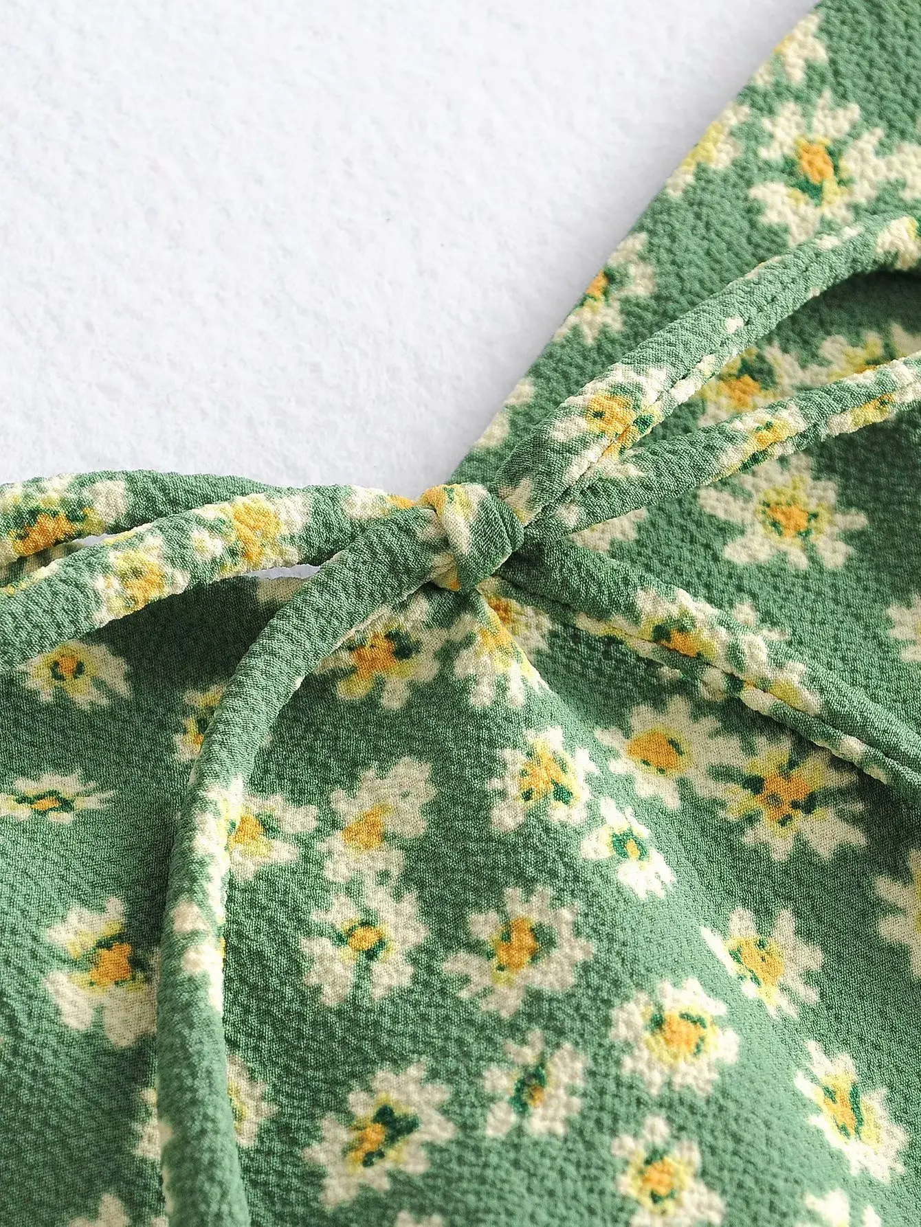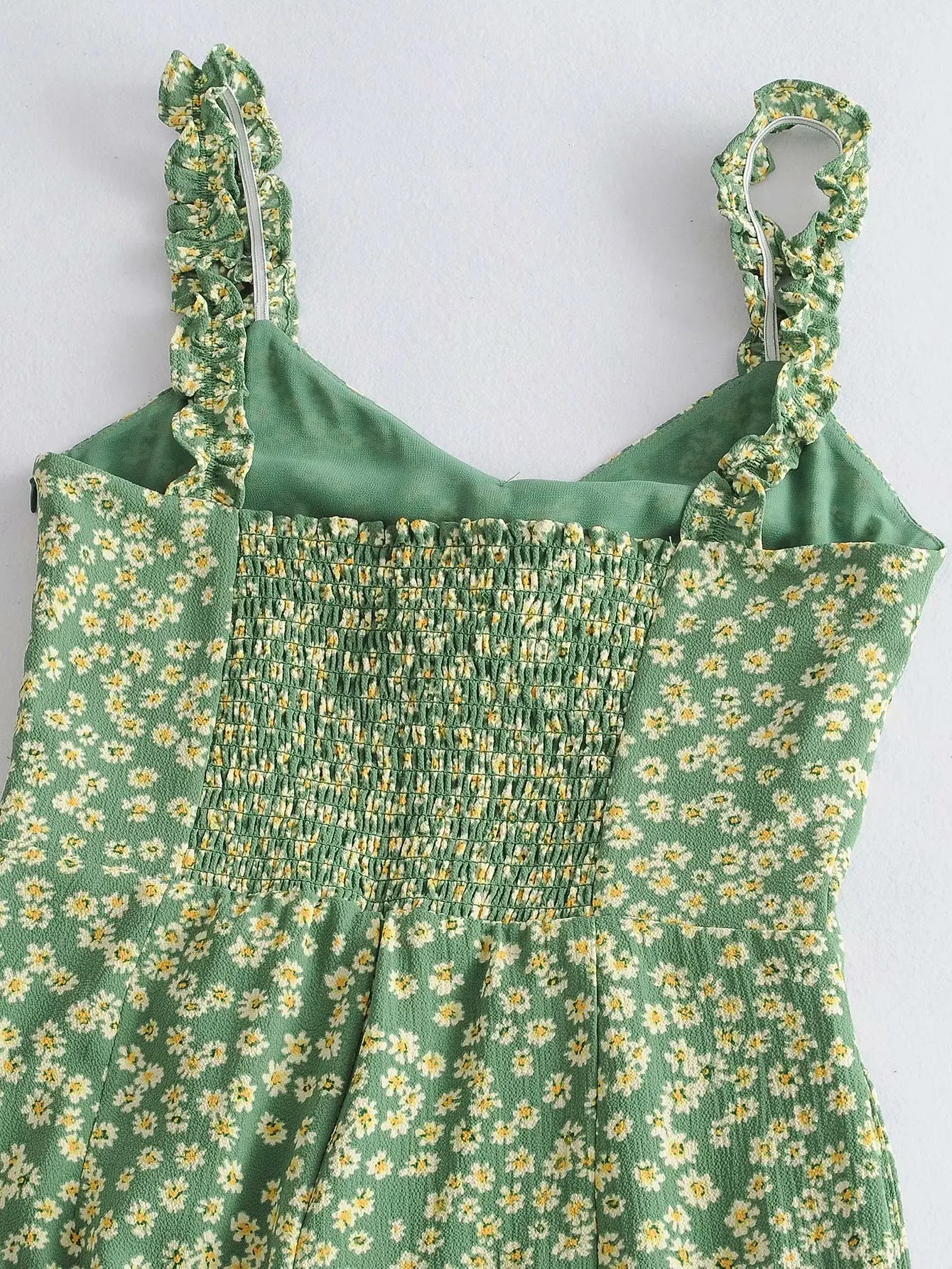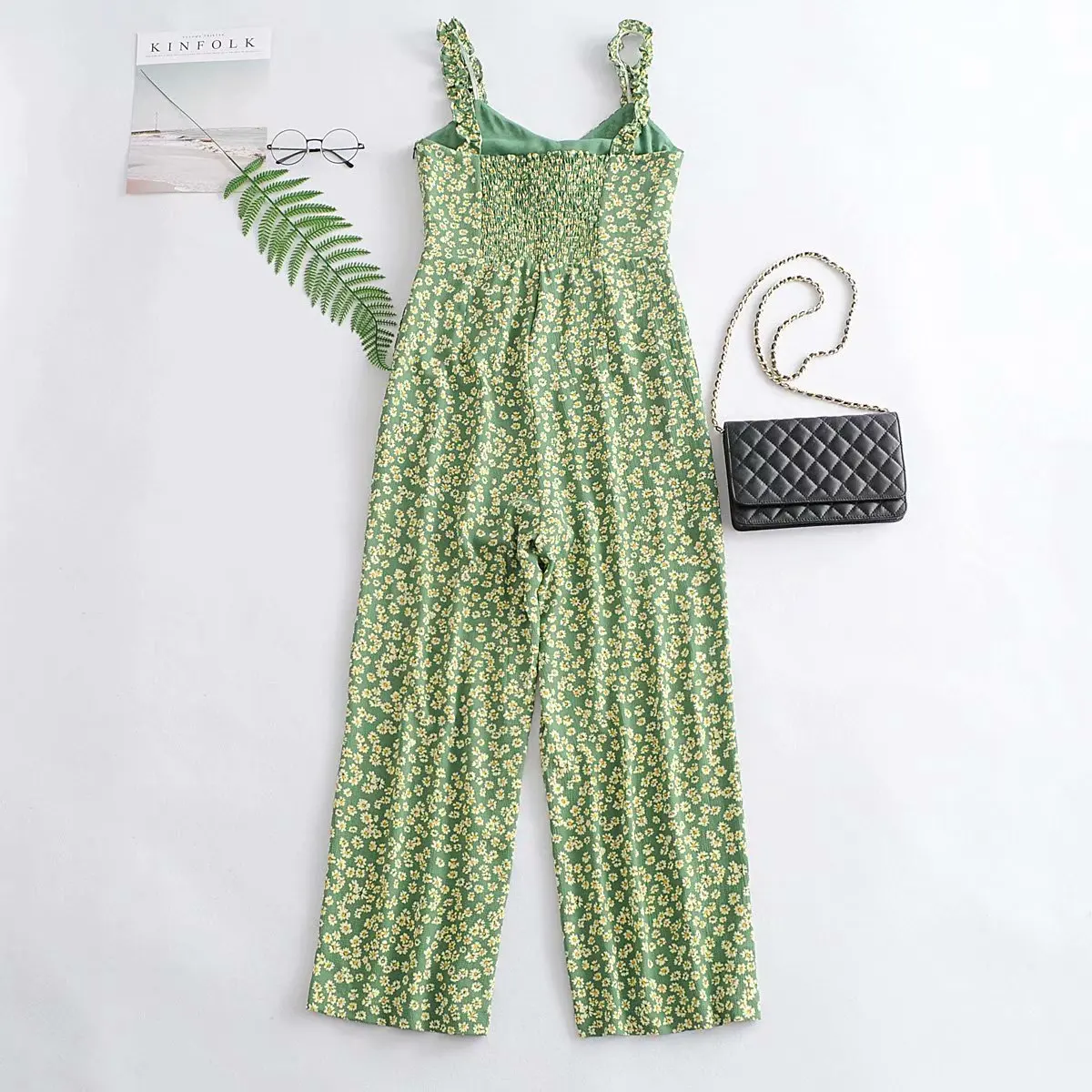 Женский комбинезон с широкими штанинами и цветочным принтом, уличный Повседневный плиссированный комбинезон с высокой талией и глубоким v-образным вырезом без рукавов
