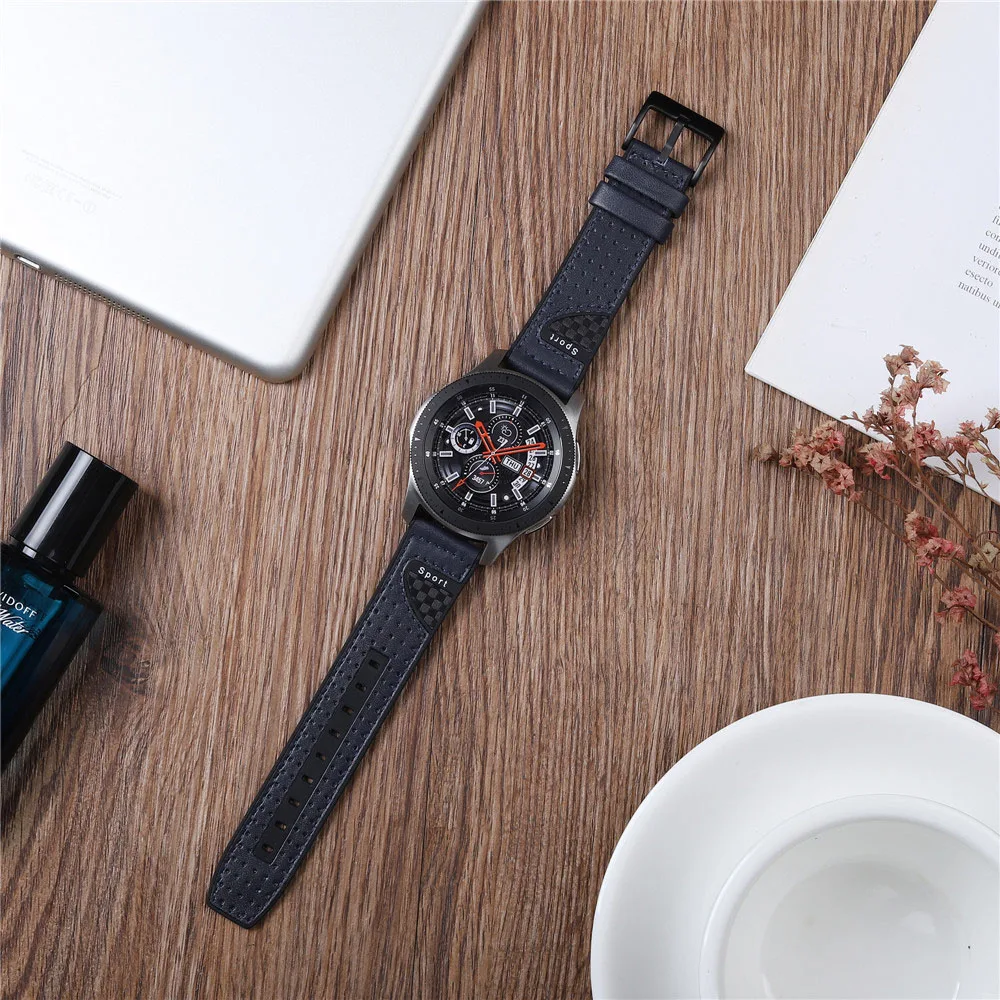 Спортивный дышащий кожаный ремешок 22 мм + силиконовый ремешок для Samsung Galaxy Watch 3 45 мм 46 мм/S3 браслет из углеродного волокна для Huawei Watch 3/Pro GT 2 2E