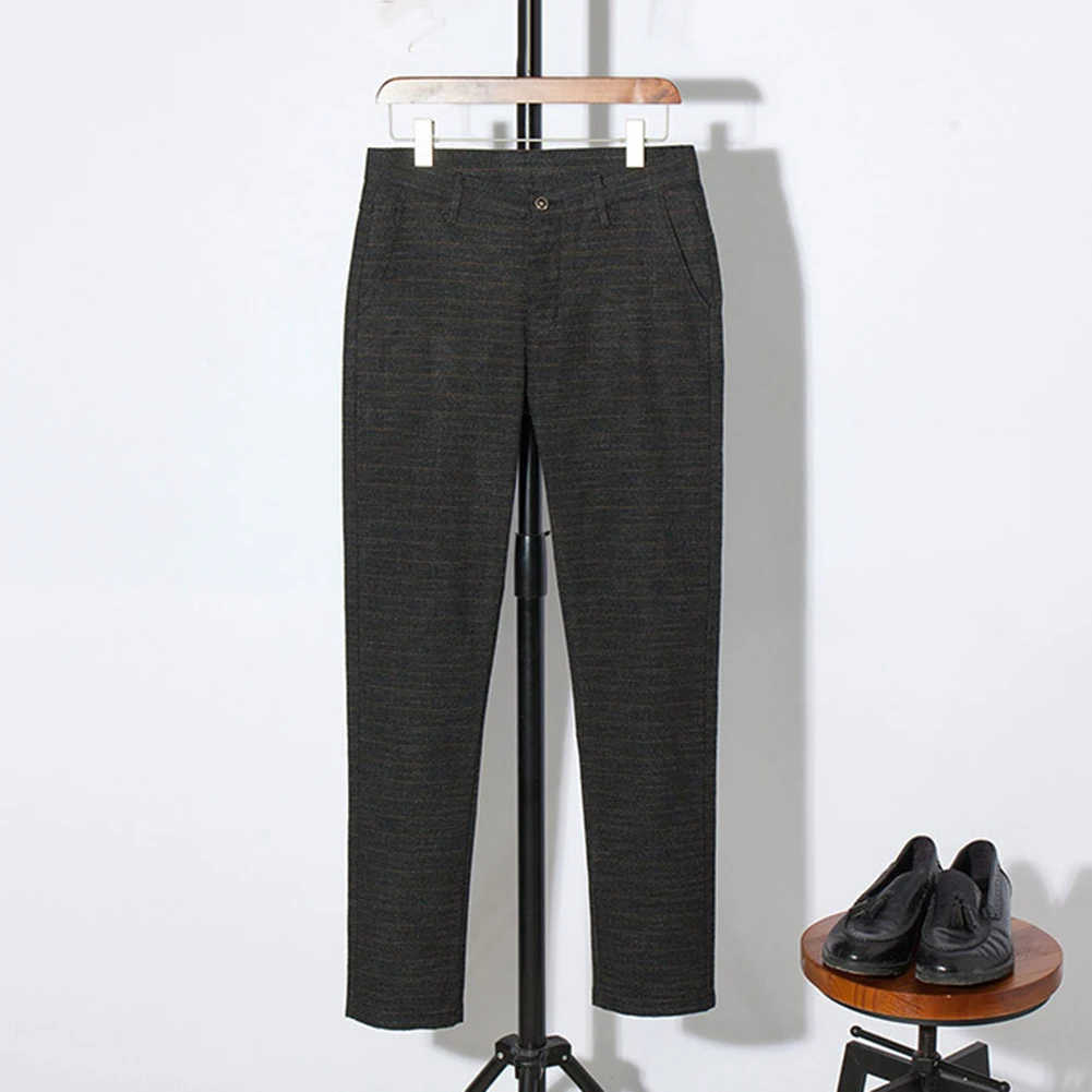 Men Solid Color Zip Button Closure Pockets Straight Long Pants Business Trousers