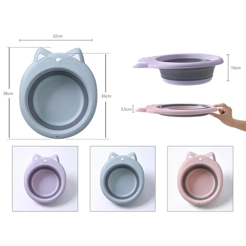 Портативное складное ведро, складной умывальник с очаровательной кошкой, складной умывальник с мультяшным рисунком, складной умывальник, умывальник для автомобиля, дома