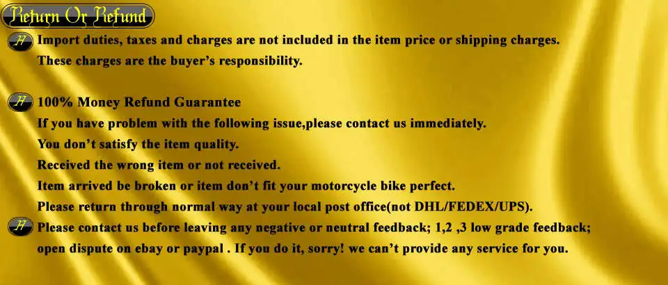 Заявление:Этот комплект обтекателей представляет собой обтекатель на вторичном рынке, сделанный в Китае (не OEM или оригинальный), на 100% такой же, как оригинальный обтекатель. Все детали той же толщины, что и оригинал,100% Установка.