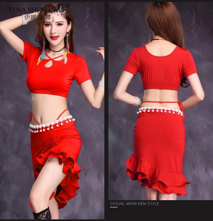Новинка, женский костюм для танца живота, сексуальный Тренировочный Набор, 5 цветов, восточные болливудские танцы, Модальная юбка, комплект из 2 предметов, одежда для взрослых