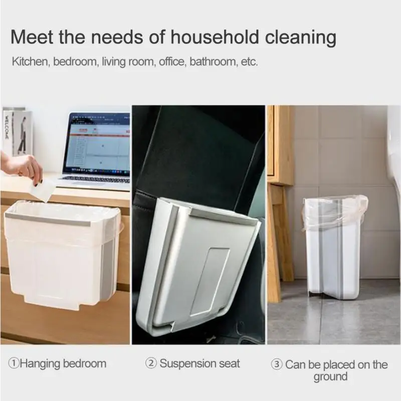 Необходимо иметь для кухни: легко установить, Просто прикрепите компактный складной мусорный бак к любым ящикам шкафа или дверям. При приготовлении свежих продуктов, нарезки и нарезки, вам не нужно постоянно открывать и закрывать дверцу шкафа влажными руками, по сравнению с мусорным ведром под раковиной.