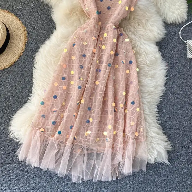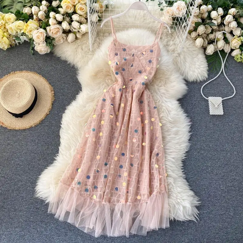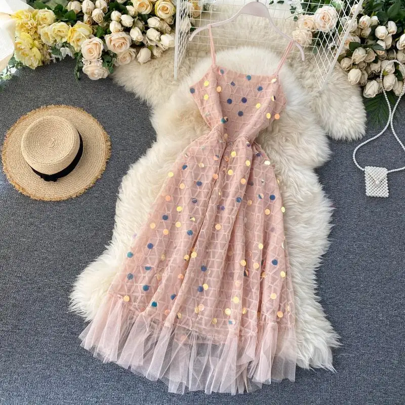 Brand NameNoneModel Numbertb ly60MaterialPolyesterStyleBohemianSleeve Length(cm)SleevelessPattern TypeSolidSleeve StyleSpaghetti StrapDecorationSequinedSilhouetteA-LINEWaistlineempireDresses LengthKnee-LengthSeasonSummerNecklineV-NeckMeasurement unit100000015Each pack1Waist TypeHigh Waist