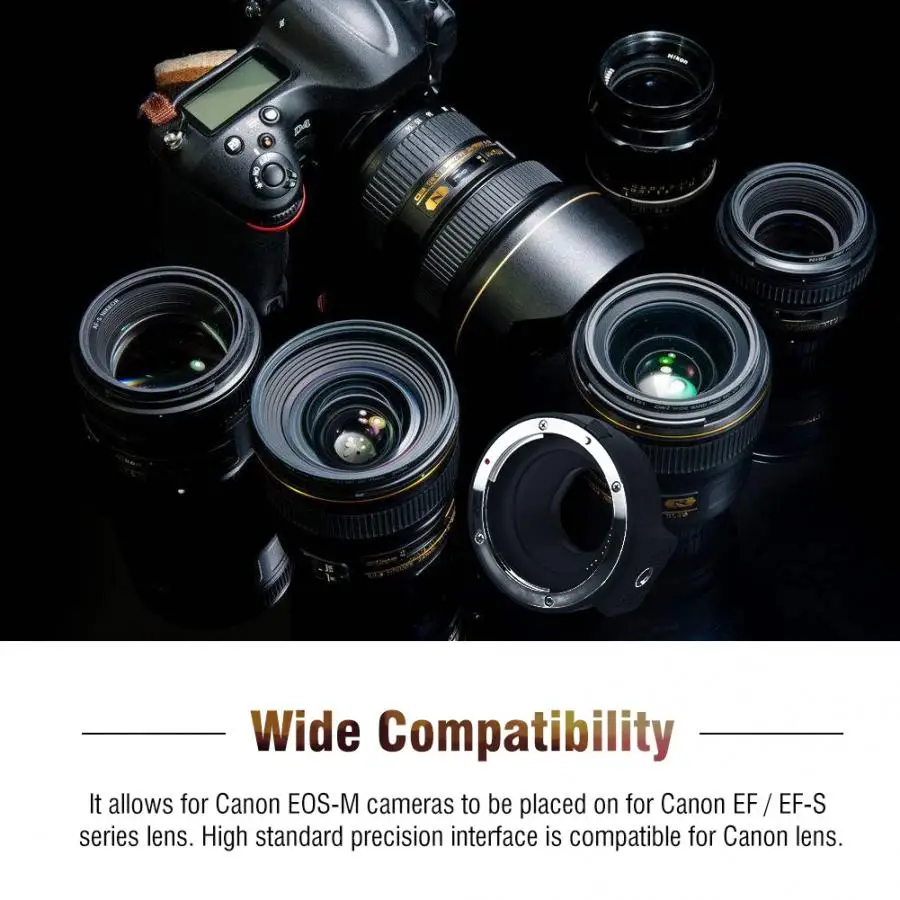 Совместимость Камера Корпус:Для Canon EOS-M камераСовместимый объектив камеры:Для объективов серии Canon EF / EF-S