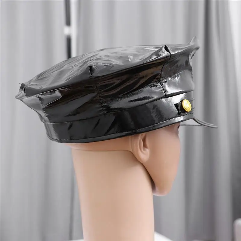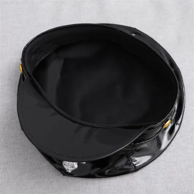 1 x ЗНАЧОК восьмиугольный кожаный полицейский головной убор черный капитан Плоская верхняя сценическая Военная Кепка (черный)