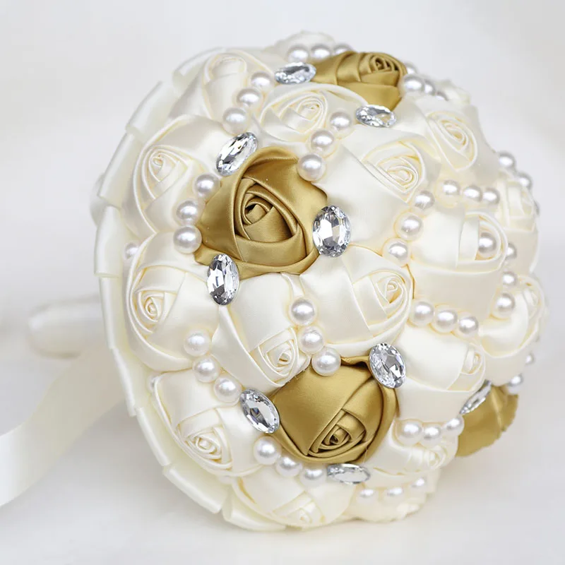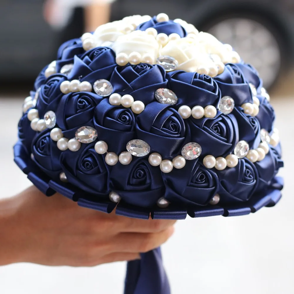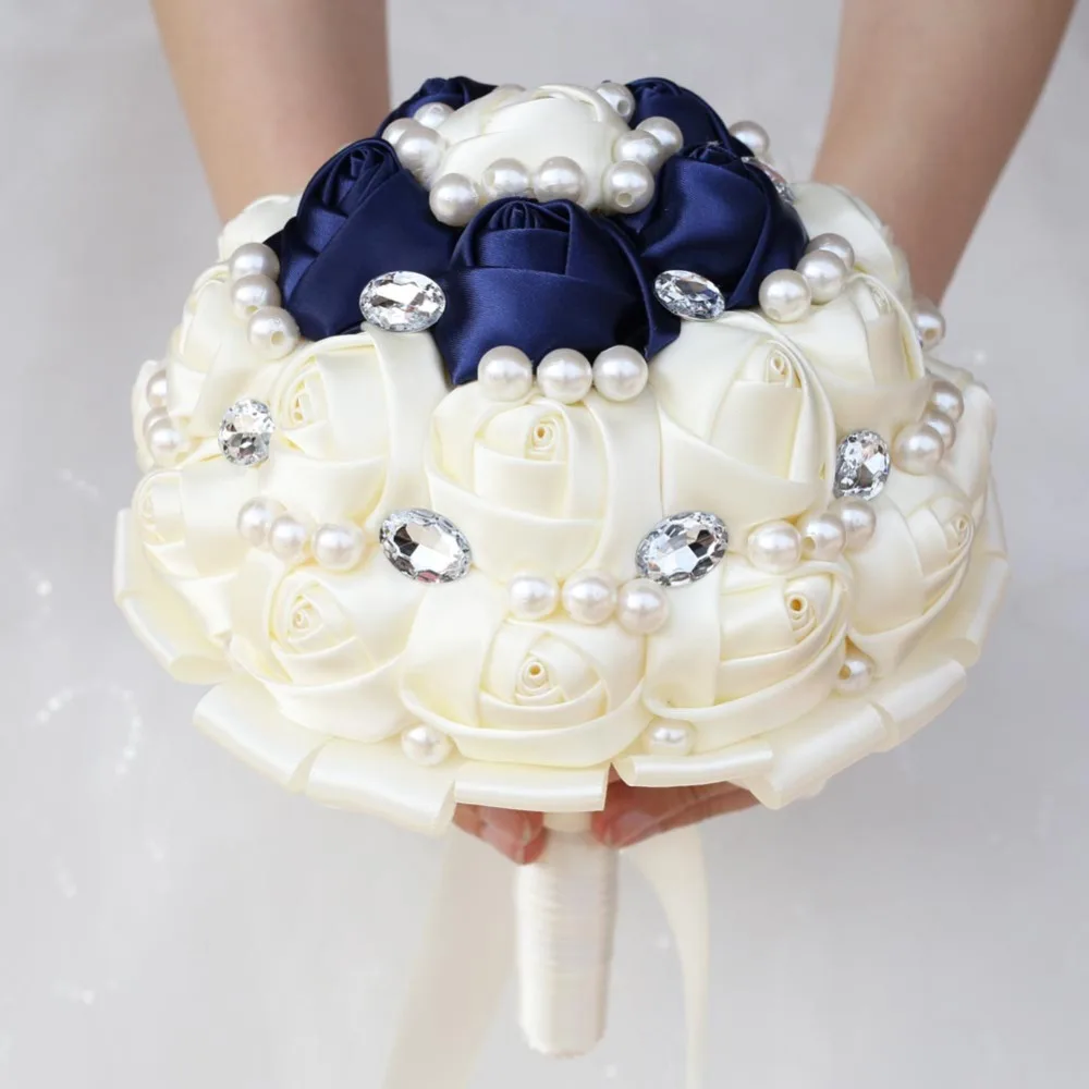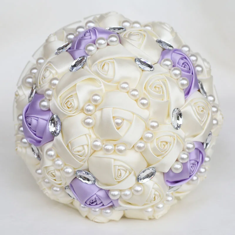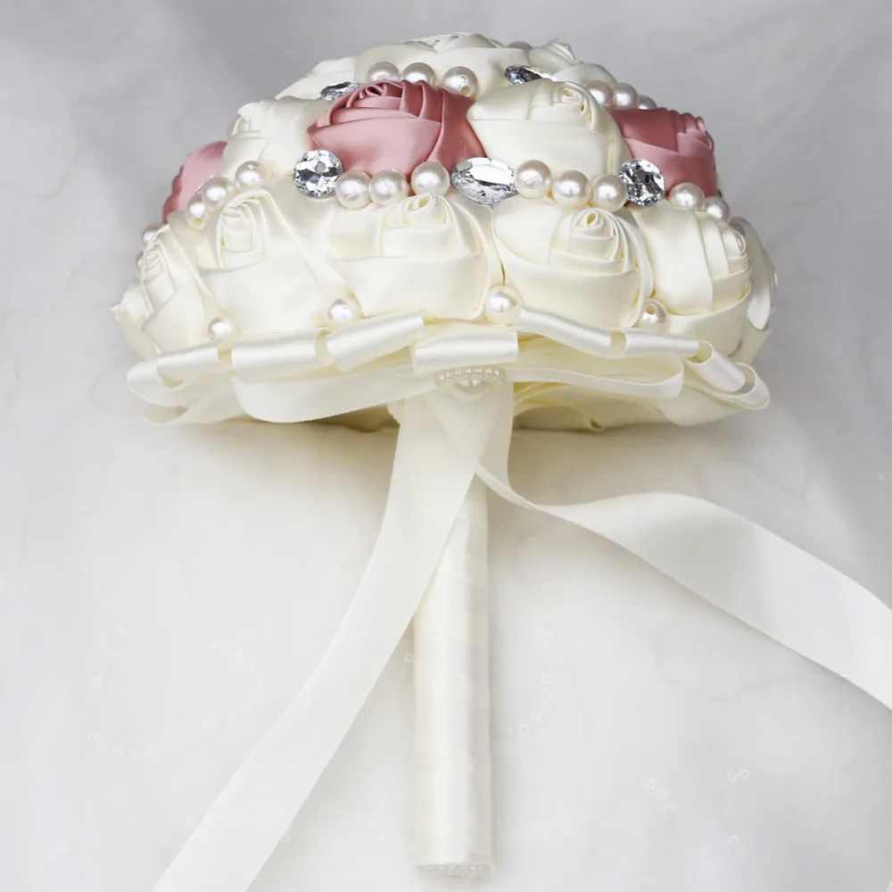 [Наименование]Свадебный букет ручной работы из сатина с бриллиантами