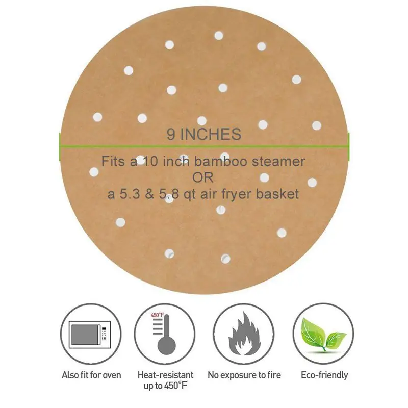 100 шт. неотбеленные вкладыши для фритюрницы, 22,8 см Бамбуковые вкладыши для пароварки, силиконовые бумажные круги идеально подходят для 5,3 и 5,8 QT воздушные фритюрницы/ба