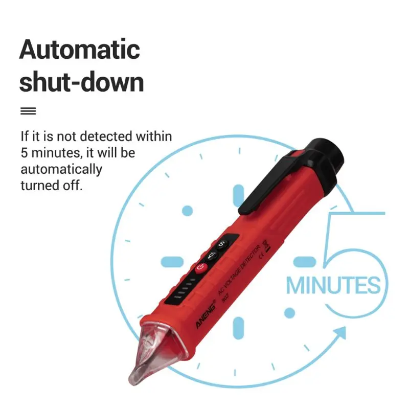 Функция автоматического отключения при отсутствии работы тестера и отсутствии сигнала напряжения, обнаруженного тестером в течение 5 минут, тестер автоматически отключится.