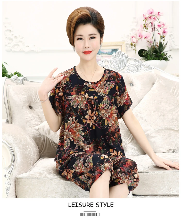 #0619 топы с короткими рукавами и короткие штаны эластичной резинкой на талии