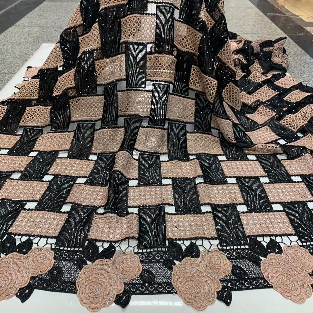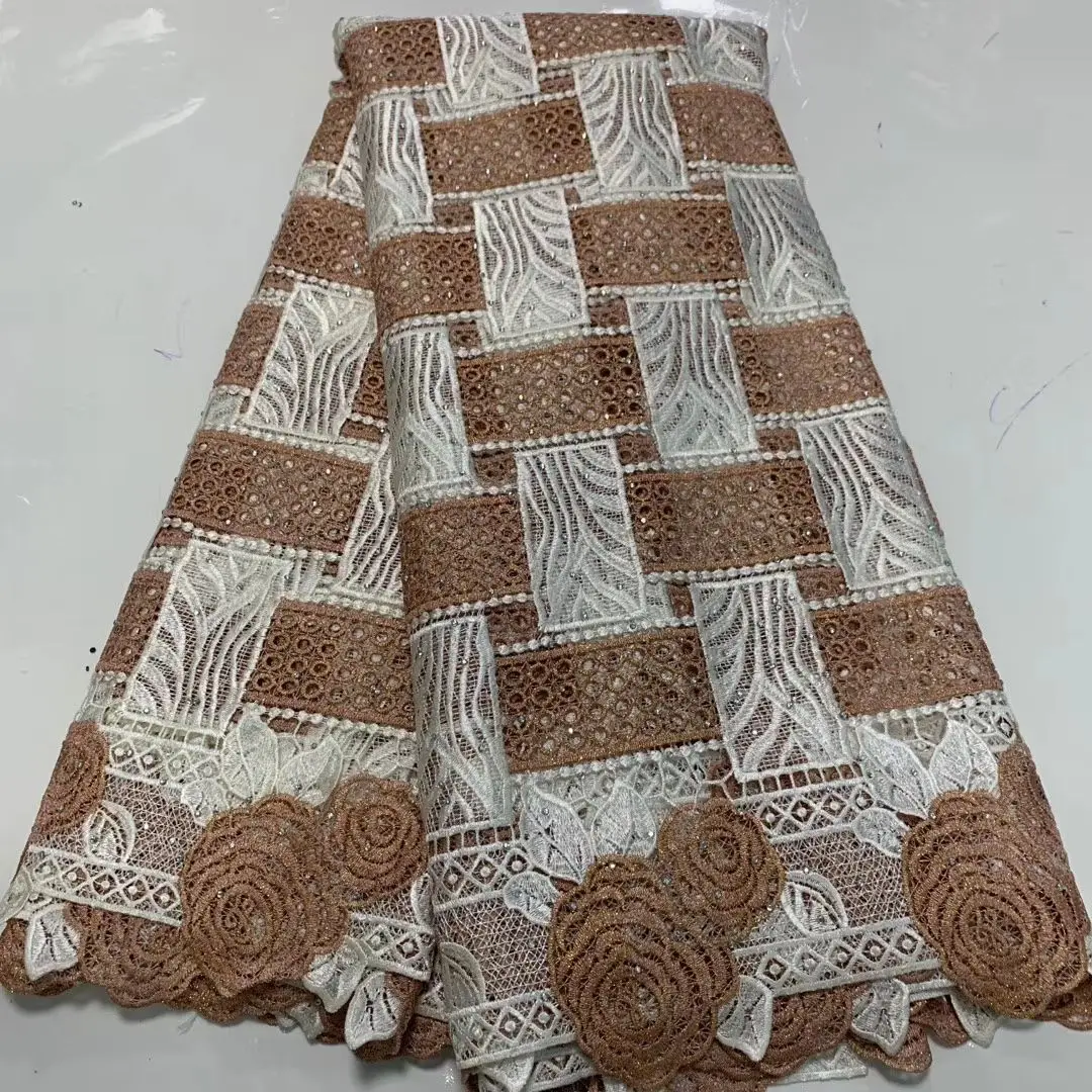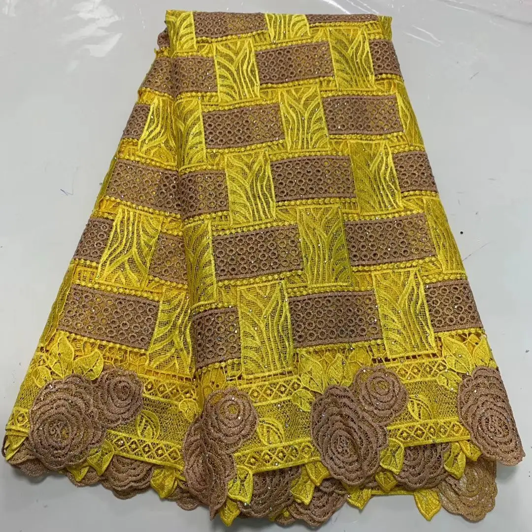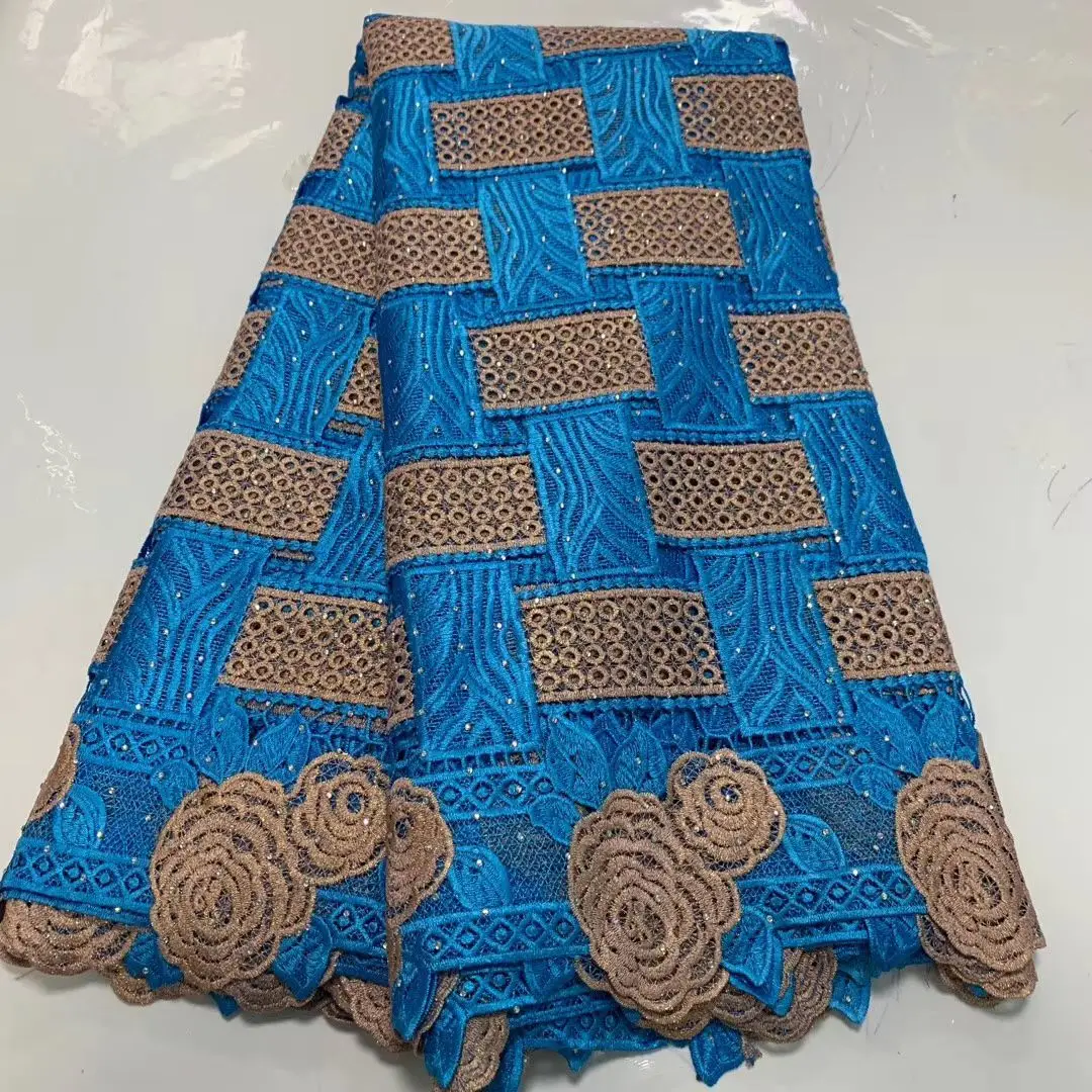 Гипюровая швейцарская водостойкая кружевная ткань, африканские кружевные материалы для платья, Высококачественная кружевная ткань Анкары с камнями, 5 ярдов