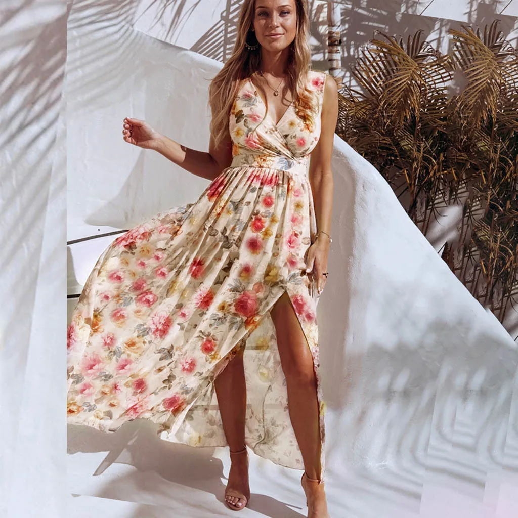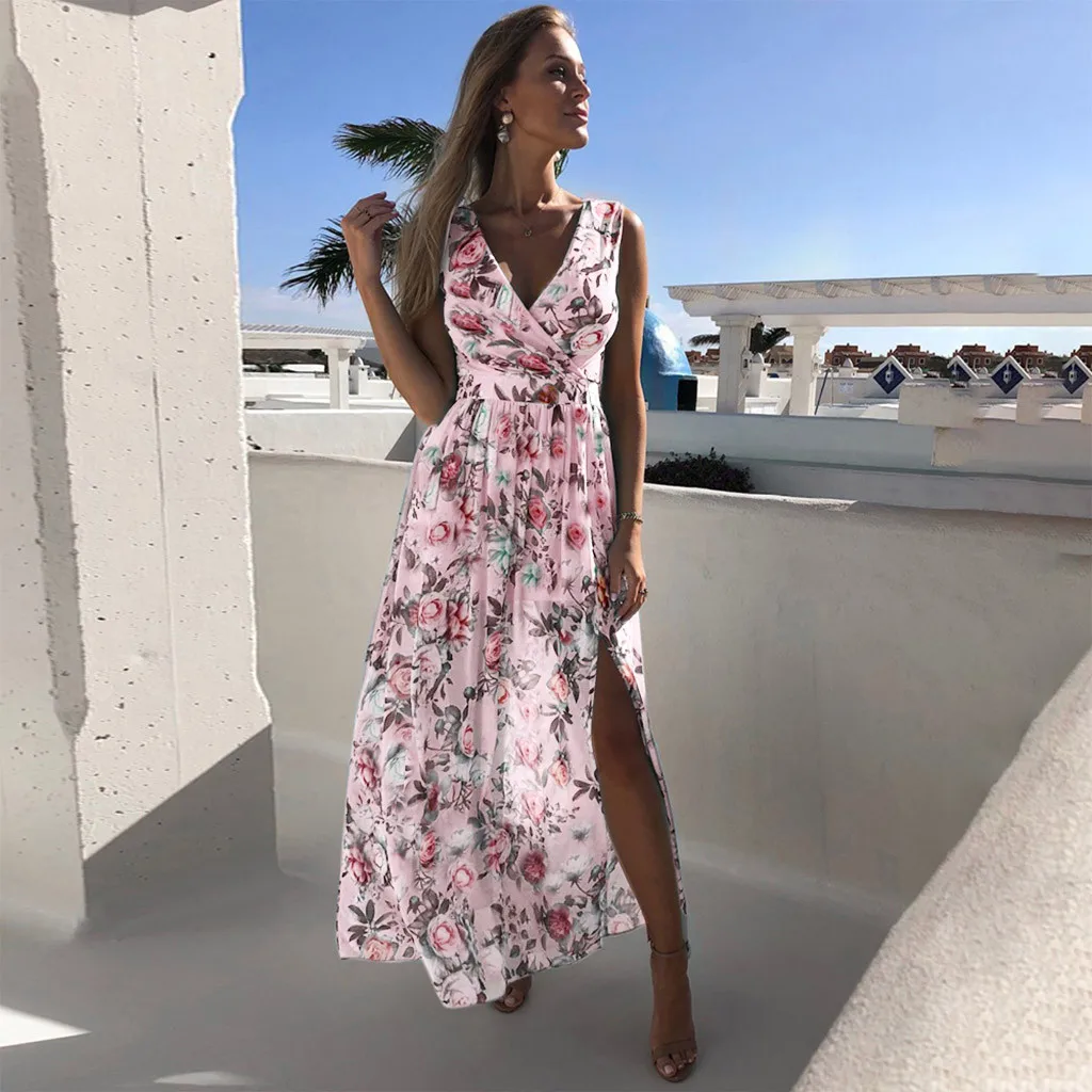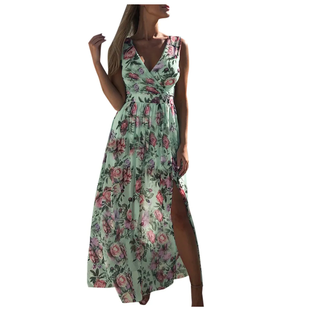 3. V-образный вырезБез рукавов, с запахом спереди, с цветочным принтом, с разрезом по бокам. Он имеет vОчень лестно обрезается на теле,Покажите свои изгибы с шармом. АTtractive style делает вас очаровательной и сексуальной.