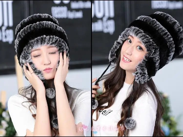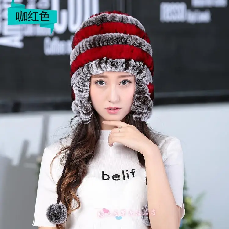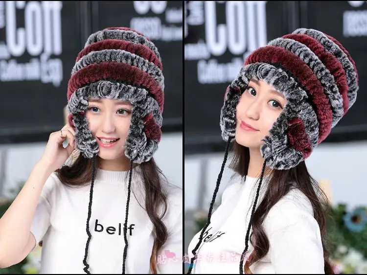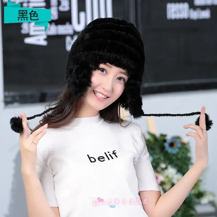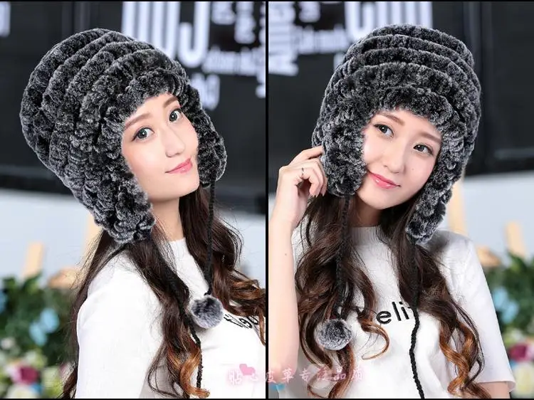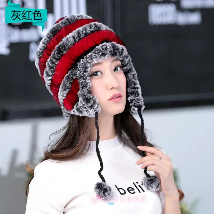 Зимние женские меховые шапки вязаная шапка из меха кролика рекс с украшением в