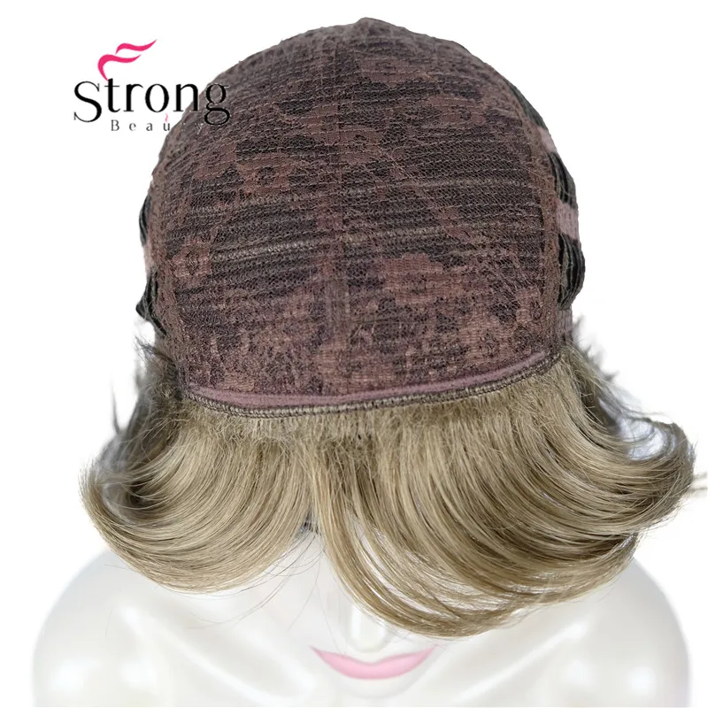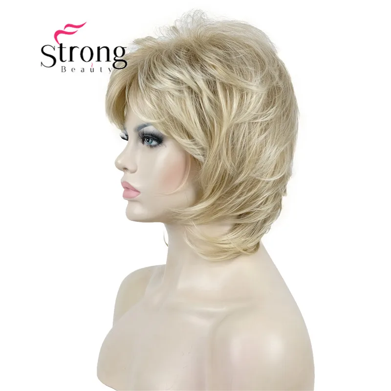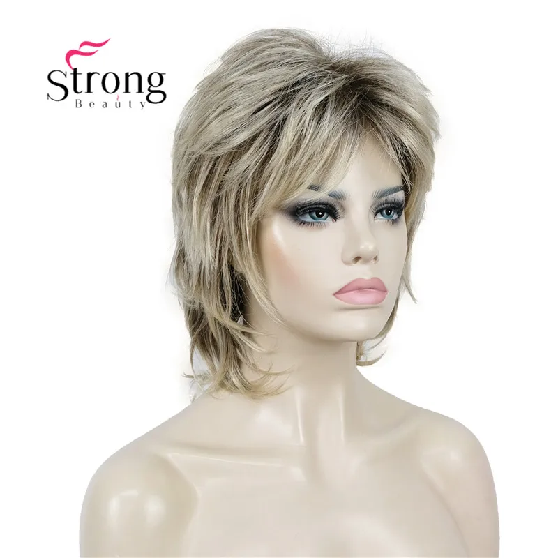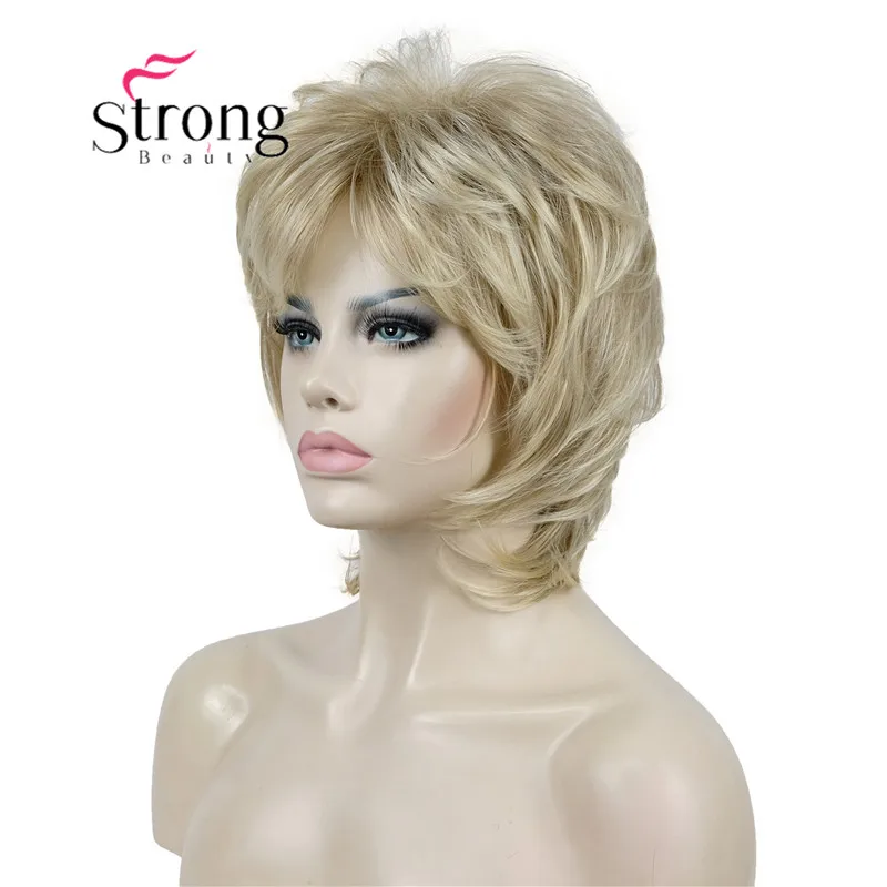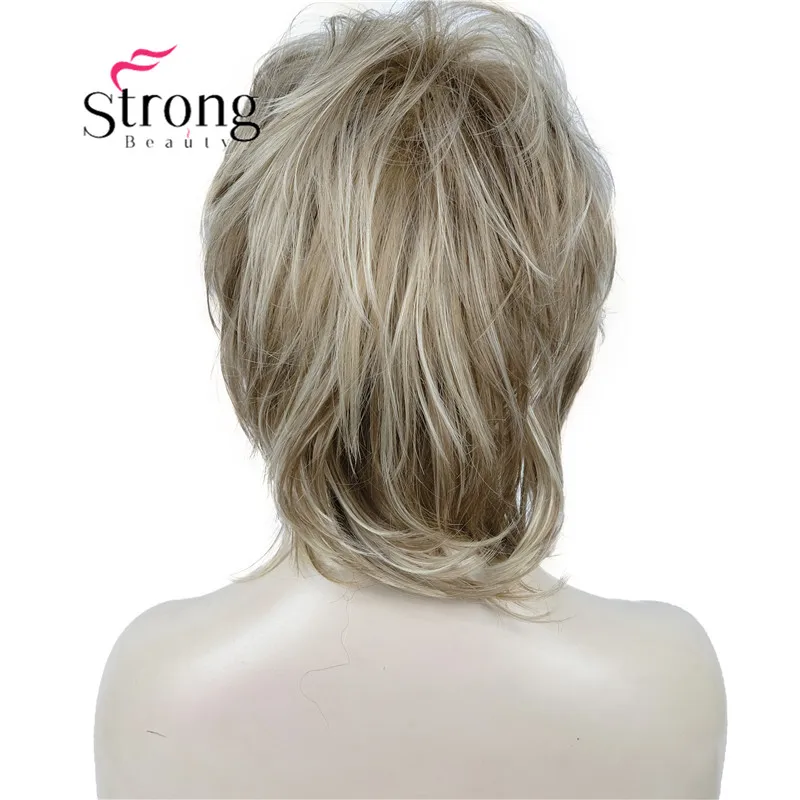 Модный женский блонд с темными корнями, короткие каскадные Слои, синтетические волосы, полный парик