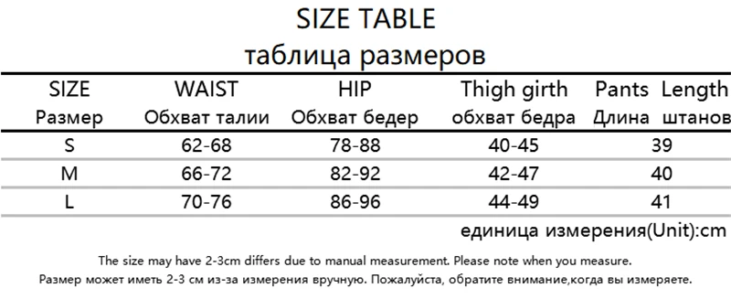 Таблица размеров для шорт