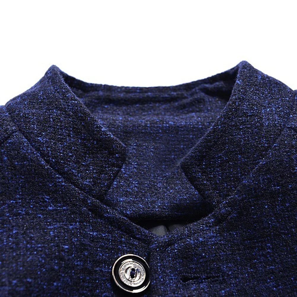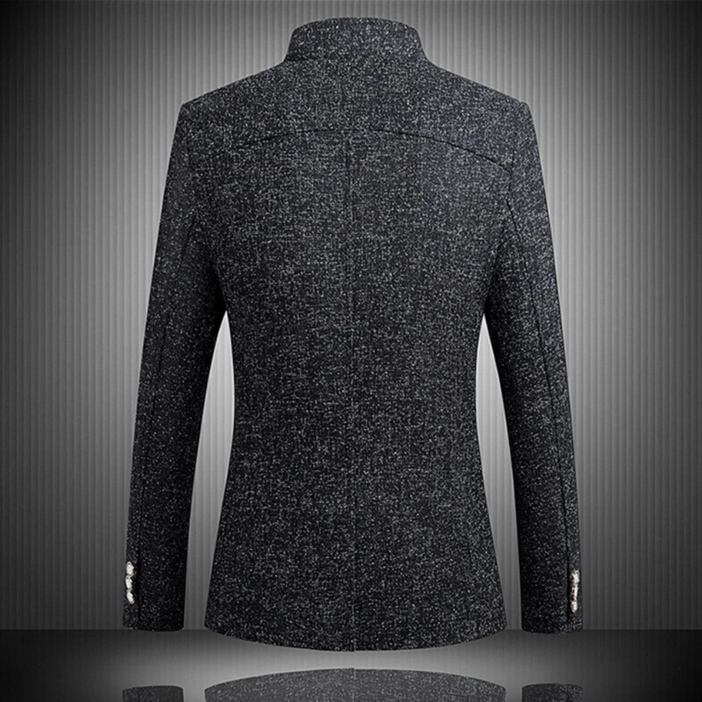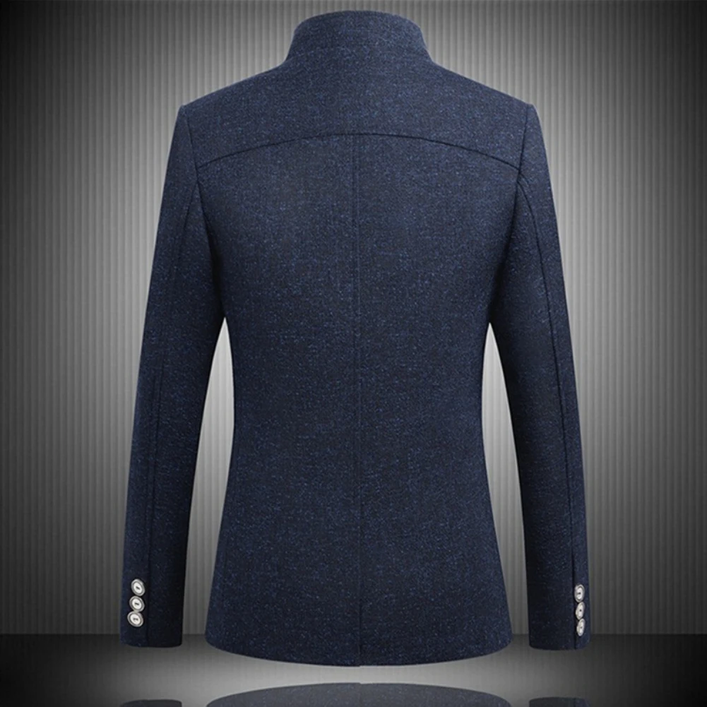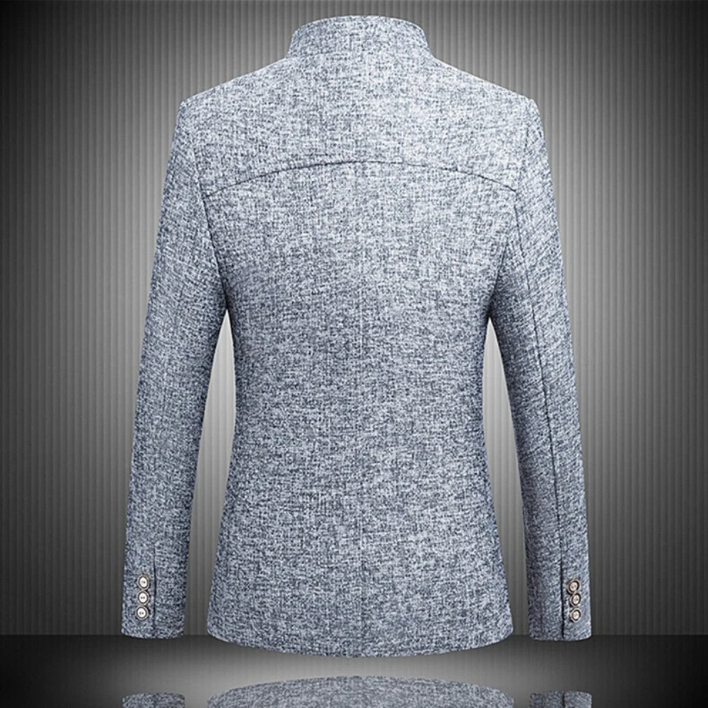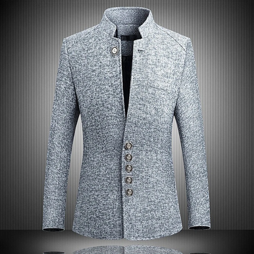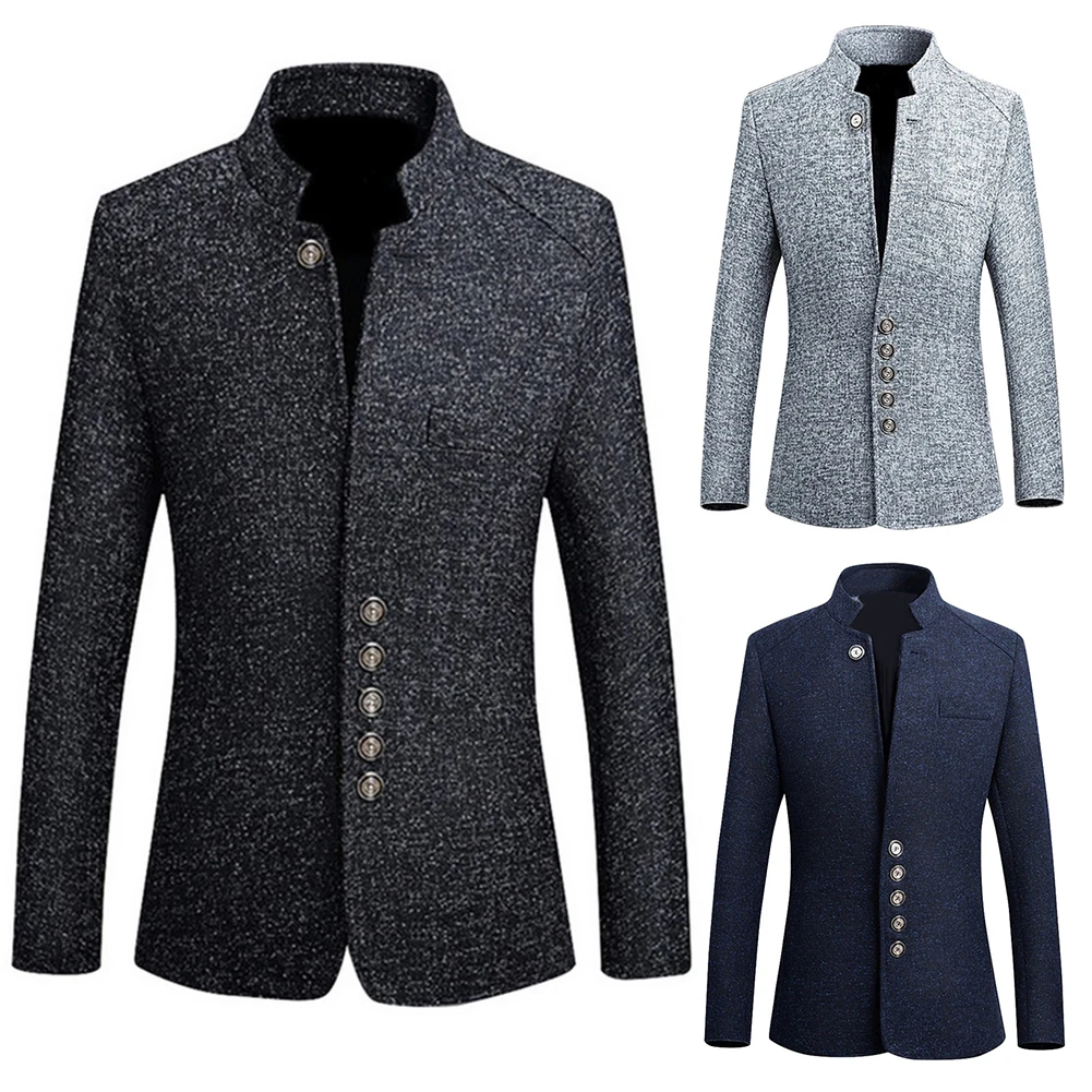 Мужской однотонный Однобортный блейзер с длинным рукавом и воротником-стойкой размера плюс