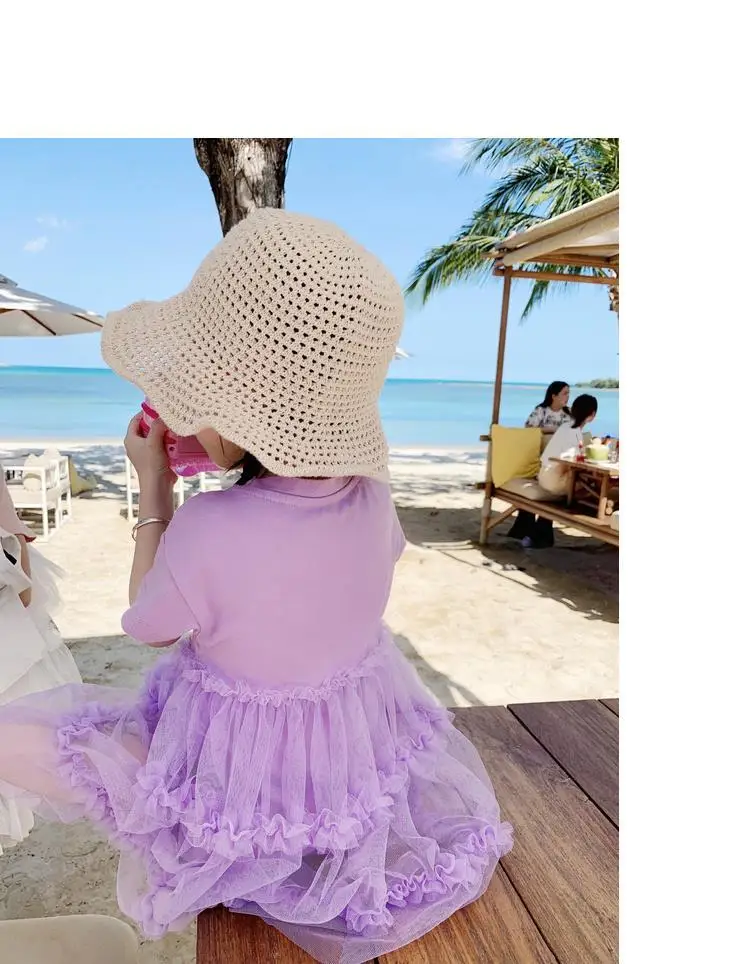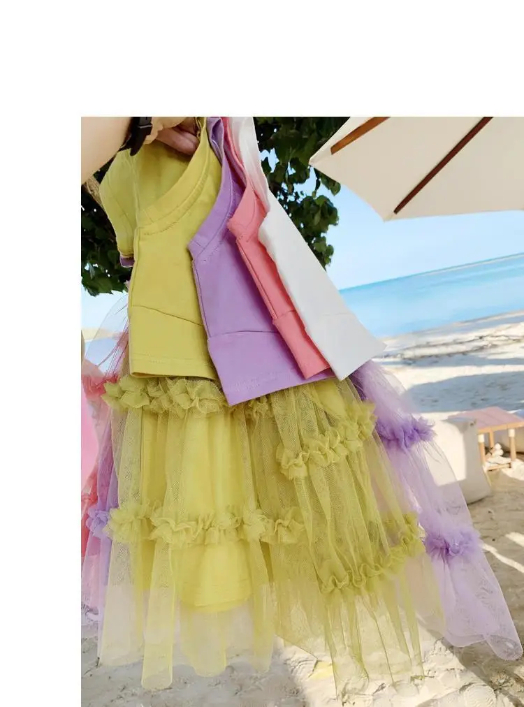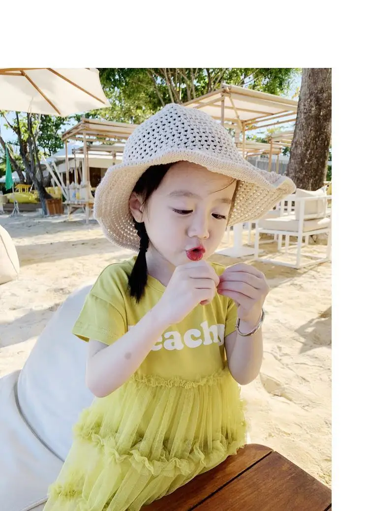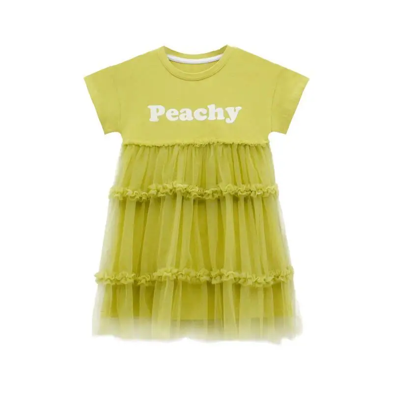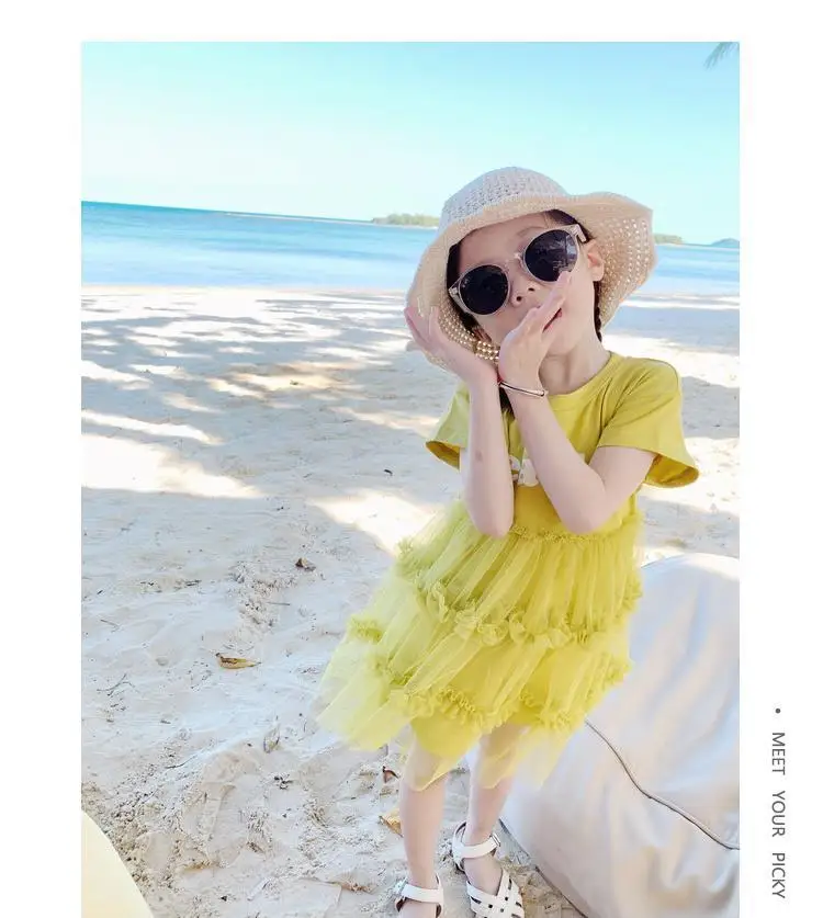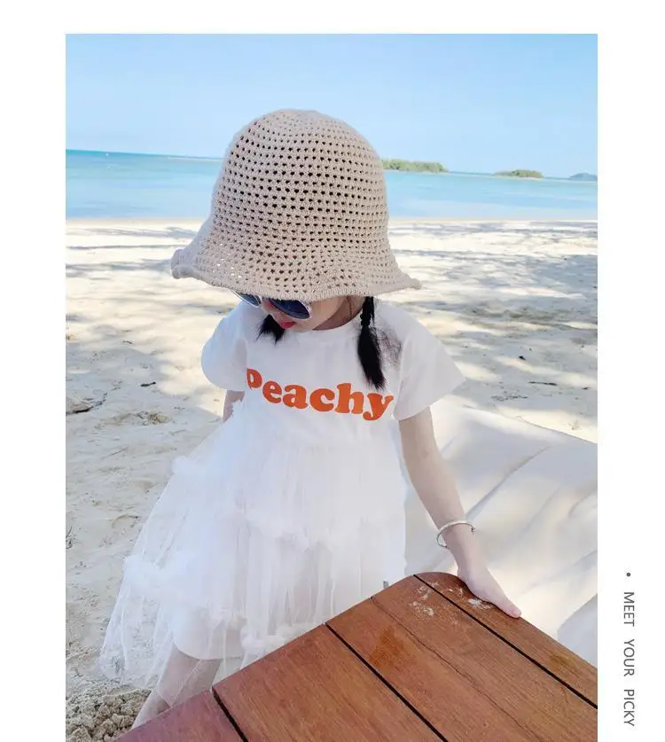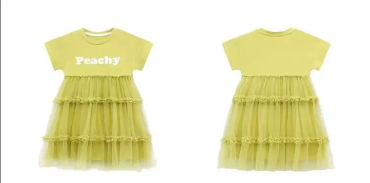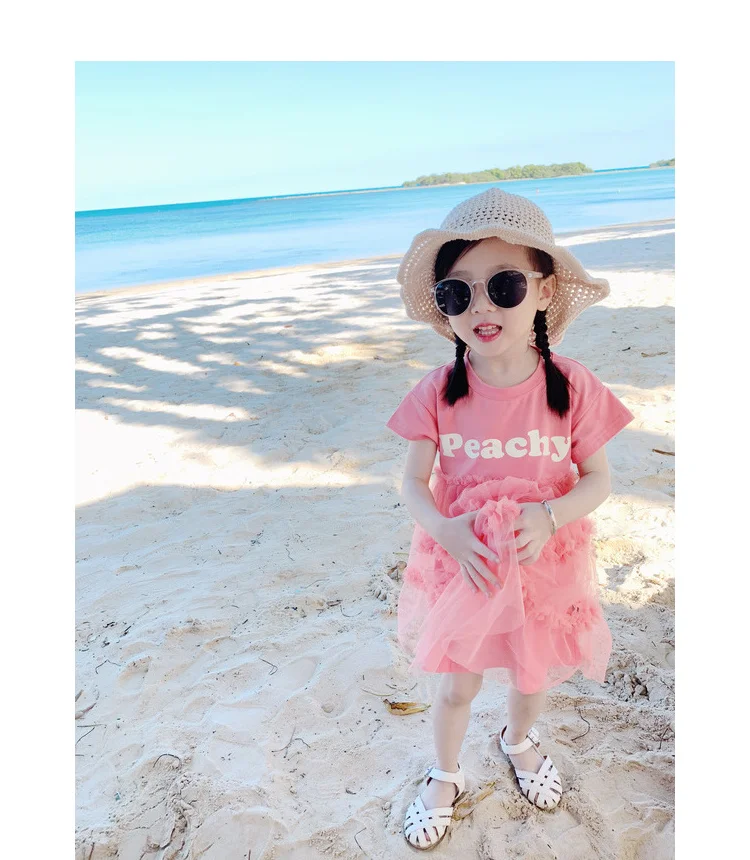 Летнее платье-пачка для маленьких девочек, платье-футболка, детская длинная футболка, одежда для маленьких девочек, пляжные Многослойные сетчатые платья с надписью ins