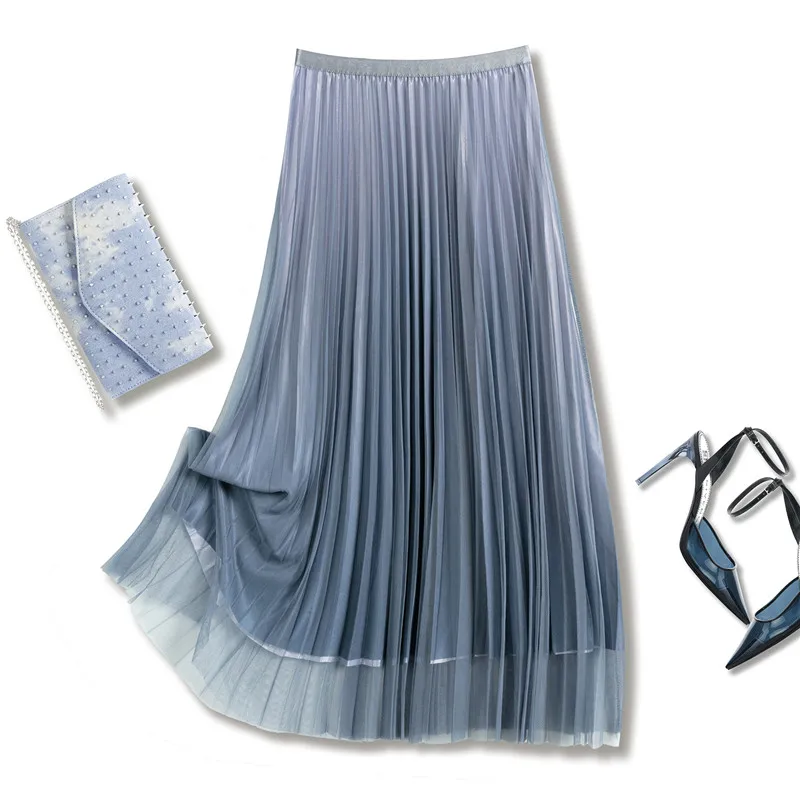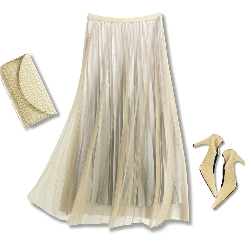 Женская шифоновая плиссированная юбка длинная бежевого цвета в пол для невесты