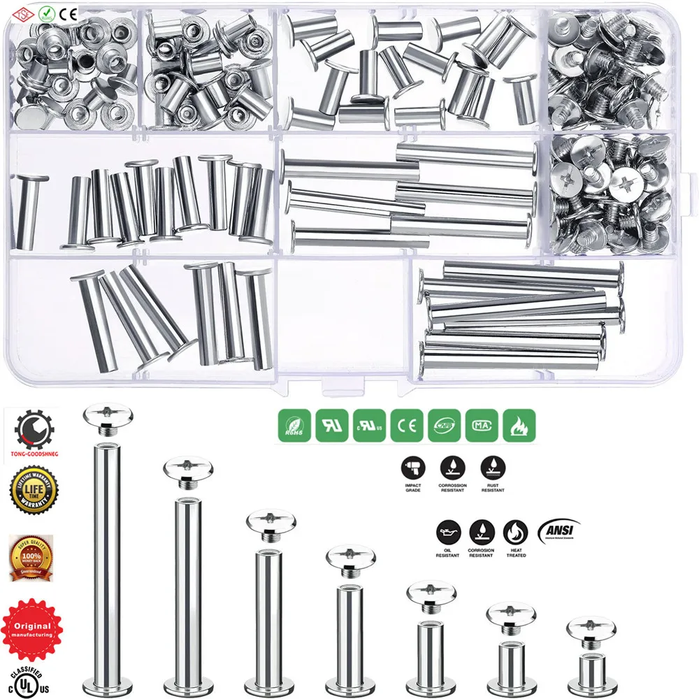 Набор винтов Chicago, набор из 5 размеров, металлические винты с круглой крестообразной головкой, заклепки для гвоздей, кнопка Chicago для кожаных украшений «сделай сам», переплет книг (5x5, 8, 12, 18, 25, 35, 45)