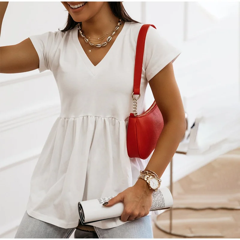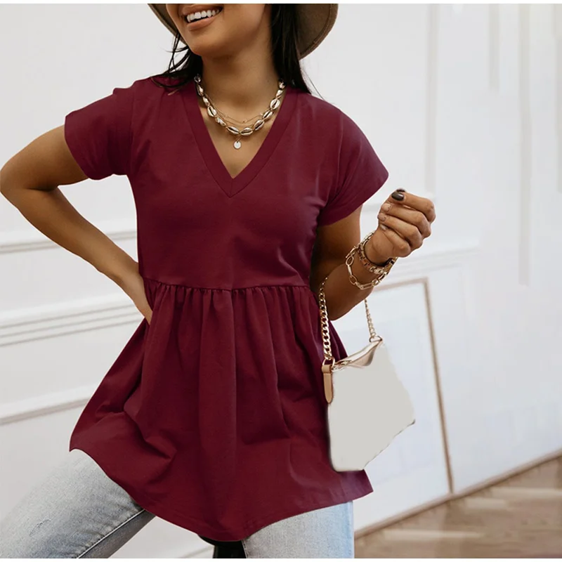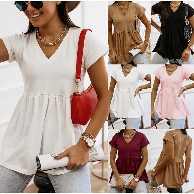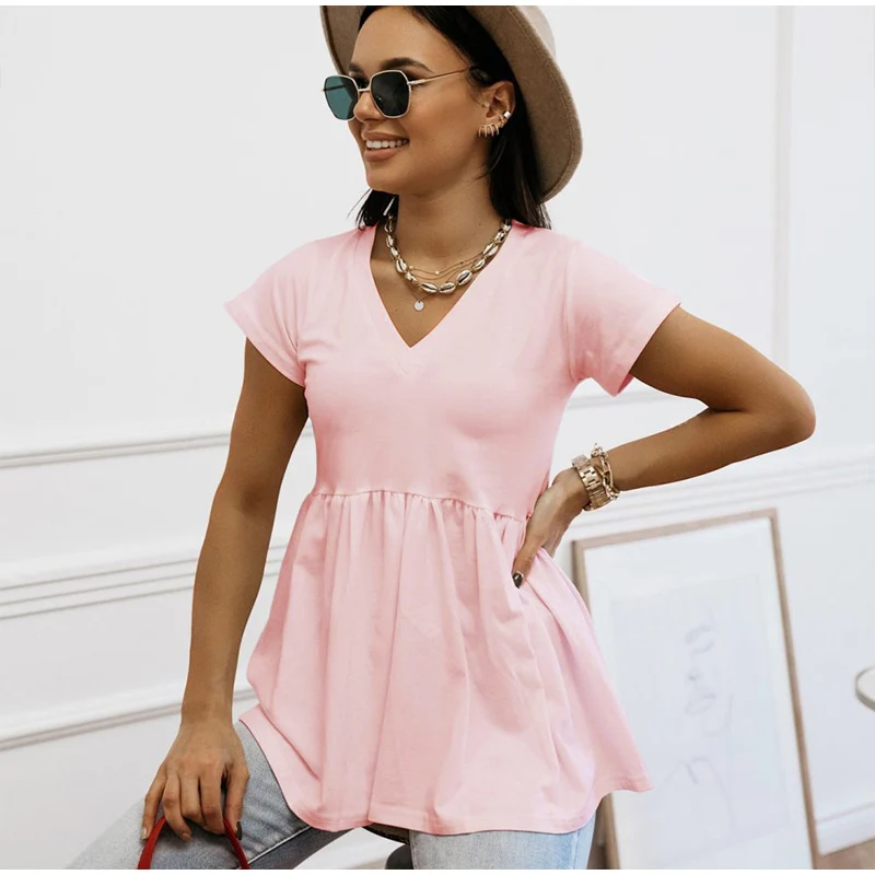 Женская блузка с v-образным вырезом, хлопковые блузки с коротким рукавом, женские блузки размера плюс 2020, летние новые повседневные Модные женские топы