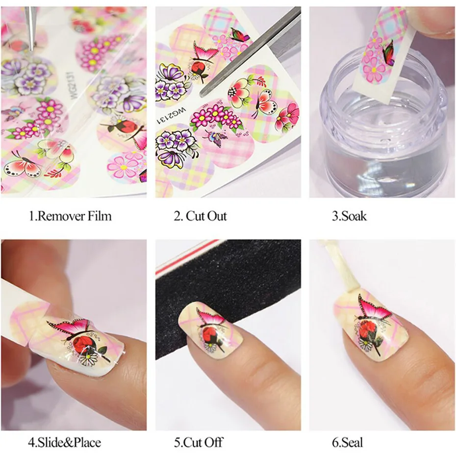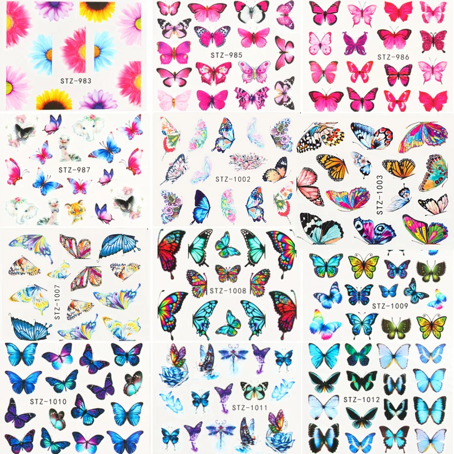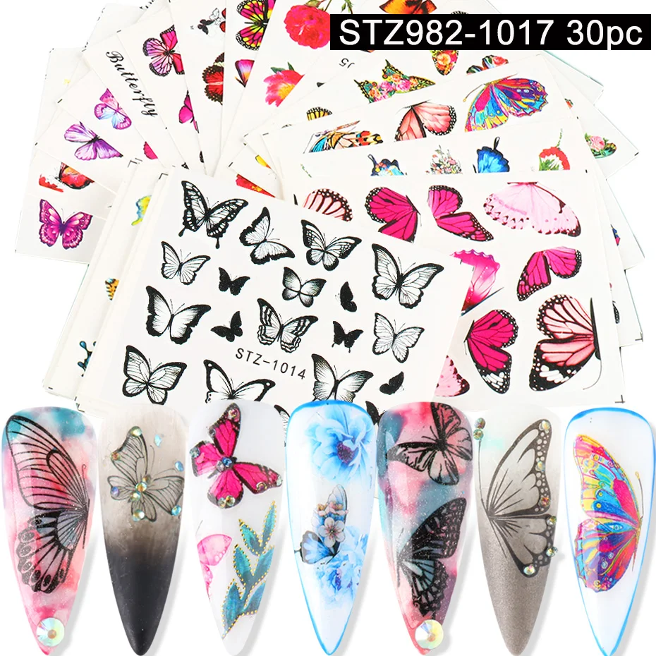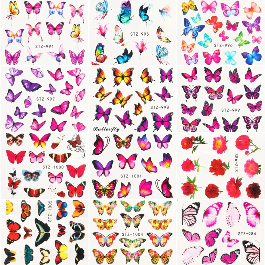 Лотос Бабочка цветок наклейки для ногтей набор акварельные цветочные розы милые животные переводные наклейки для украшения ногтей