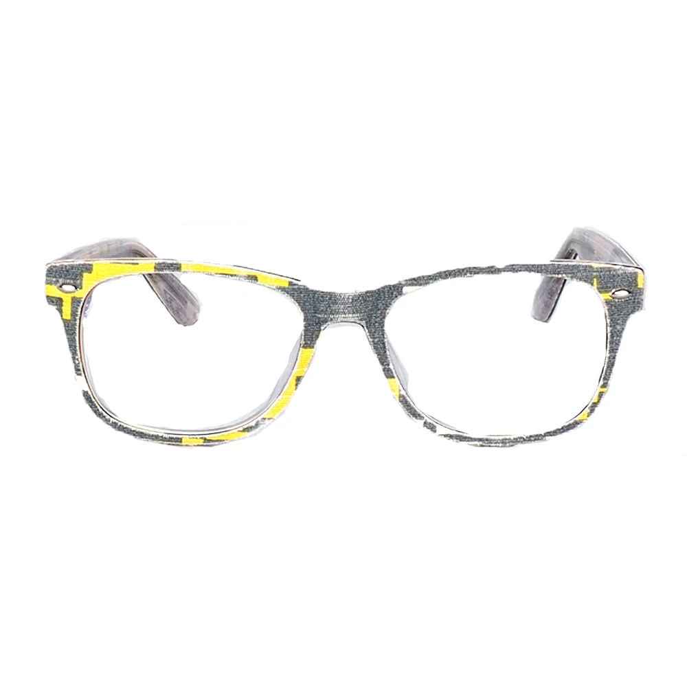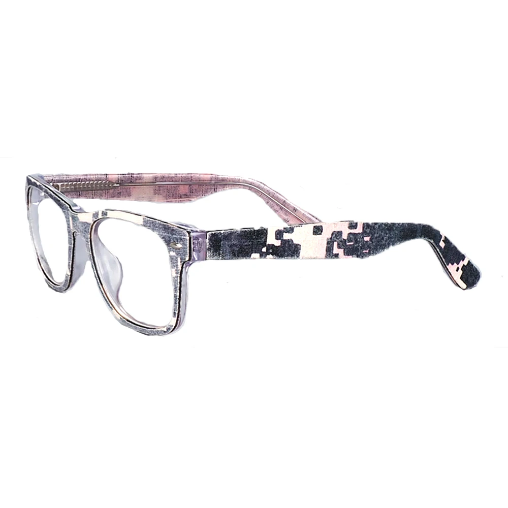These unisex eyeglass frames are made of acetate and denim. They are lightweight and designed to give you a comfortable wearing experience. These can be worn by both men and women. The frames come with demo lenses that are to be replaced with your prescription lenses. You will get a case and cleaning cloth with your purchase. Feel free to contact us with any additional questions. Dimensions: Lens width: 51mm, Bridge width: 19mm, Leg length: 145mm
