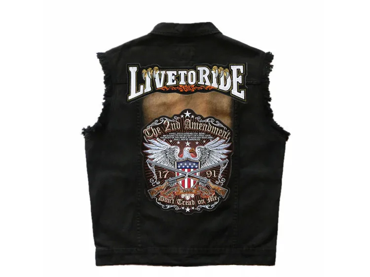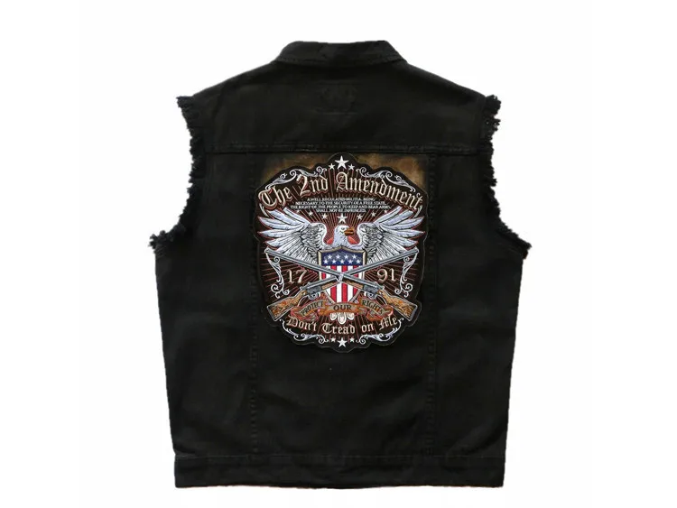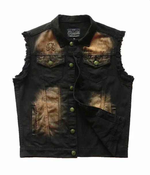 Мужская Байкерская джинсовая куртка без рукавов, винтажный ковбойский жилет с вышитым значком, черный жилет из денима