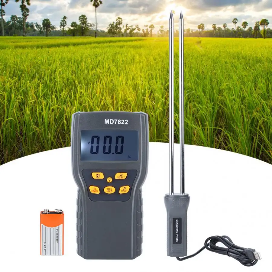 Портативный анализатор влажности зерна цифровой дисплей измеритель влажности с длинным зондом для рисовой пшеницы