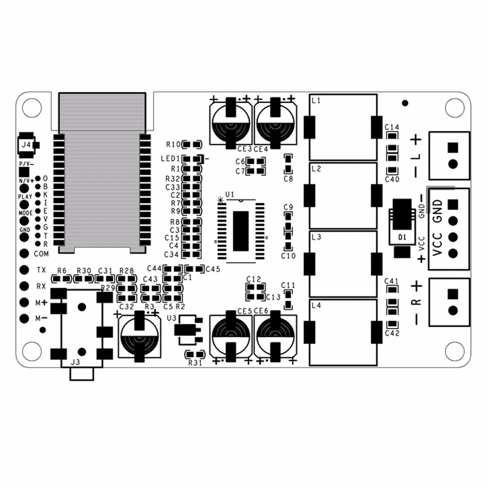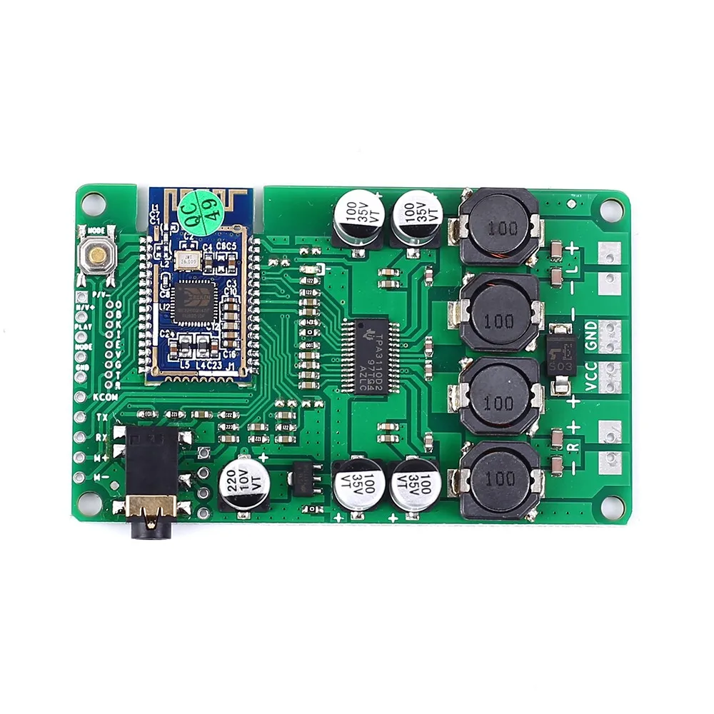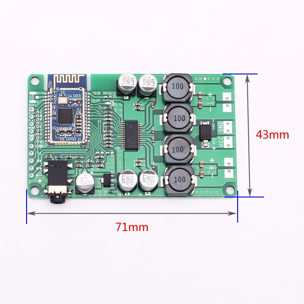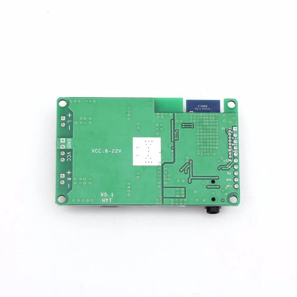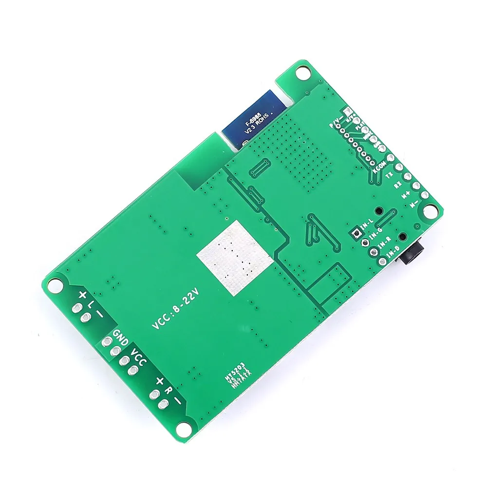 1. Описание: Это Плата усилителя мощности bluetooth 5,0. Она поддерживает последовательный порт rename, поддерживает одно нажатие сопряжение TWS, поддерживает Вход AUX TWS в коробку и поддерживает звонки. 2. Особенности: 1>. С защитой обратного соединения 2>. Поддержка изменения имени Bluetooth 3>. Поддерживает сопряжение TWS одним нажатием 4>. Поддерживает Вход AUX 5>. Поддержка клавиш и последовательного управления 6>. Поддержка воспроизведения SD/TF карт 7>. Поддержка MP3/WMA/WAV формат музыки 8>. Поддержка воспроизведения u-диска 9>. Поддержка внутренней линии 10>. Поддержка внутреннего fm-радио 11>. Поддержка инфракрасного дистанционного управления 3. Параметры: 1>. Название продукта: Плата усилителя мощности Bluetooth 5,0 2>. Протокол Bluetooth: BLE 5,0 3>. Рабочая Напряжение: DC 8,0 V-22,0 V 4>. Выходная мощность: 1,1>.15 Вт * 2 при 16 В 4A 1,2>.10 Вт * 2 при 12 В 4A 5>. Поддержка протокола Bluetooth: HFPV1.7,A2DPV1.2,AVRCPV1.5,AVCTPV1.2, AVDTPV1.2 6>. Рабочий ток:<= 20 мА 7>. Постоянный ток:<500uA 8>. Диапазон беспроводной передачи: около 10 метров 9>. Мощность передачи: класс 2,4dbm 10>. Чувствительность:-81dBm<0.1% BER 11>. Диапазон частот: 2,402 ГГц ~ 2,480 ГГц 12>. Отношение сигнал-шум:>75 дБ 13>. Поддержка сопротивления динамика: 4 ~ 8 Ом 14>. Скорость передачи данных: 9600 15>. Бит данных: 8 16>. Стоп-бит: 1 17>. Диапазон рабочих температур:-20 ℃ ~ 85 ℃ 18>. Диапазон рабочей влажности: 0%-95% относительной влажности 19>. Размер: 71,5*45*9,5 мм 4. Использование шагов: 1>. Подключите кнопки и микрофон и динамики 10 Вт или 15 Вт в качестве схемы подключения. 2>. Подключите правильное напряжение. 3>. Входной аудиосигнал. 4>. Сопряжение с телефоном. 5>. Воспроизведение музыки на телефоне. 6>. Проверка и использование. 7>. Для подключения модуля к ПК требуется конвертер USB в TTL и отправить по UART на ПК, чтобы изменить имя Bluetooth и Пароль Bluetooth. 5. Примечание: 1>. Во время применения модуля, пожалуйста, обратите внимание, чтобы избежать влияния источника помех, таких как усилитель мощности и схема повышения на модуле, И избегайте цепи подключения серии между циклом питания модуля и блоком высокой мощности, чтобы улучшить SNR всей машины. 2>. Не рекомендуется устанавливать в металлический чехол. 6. Применение: 1>. Стерео bluetooth-динамик 2>. Стерео bluetooth-гарнитура 3>. Bluetooth-вызов 4>. Управление Bluetooth и мультимедийные устройства 5>.DIY динамик 6>. Интеллектуальное управление голосом 7>. Преобразование сигнала Bluetooth 8>. Мультимедийное оборудование 7. Посылка: 1>.1 шт. Bluetooth 5,0 Плата усилителя мощности