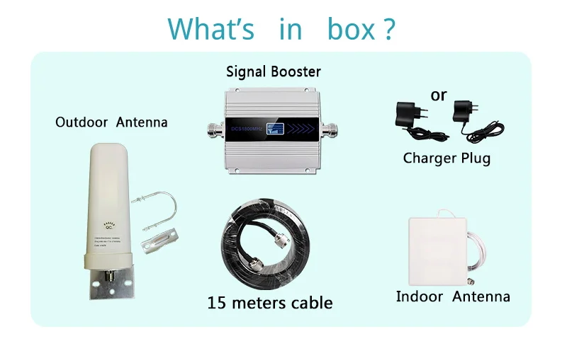 Отличительные черты товара: 1. Умный ЖК-дисплей показывает состояние сигнала в реальном времени 2. Охват: более 100 кв. М, без барьера 3. Работа для: DCS 4G 1800 МГц band 3 4. Отличная крышка, легко устанавливается 5. Весь комплект с наружной антенной, внутренней антенной, кабелем 15 метров