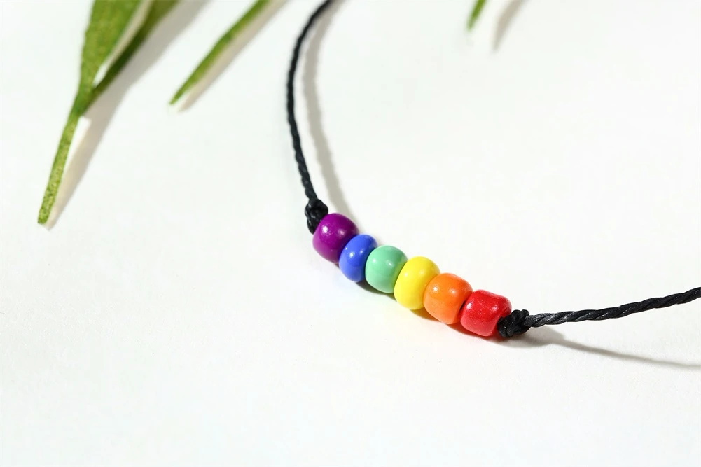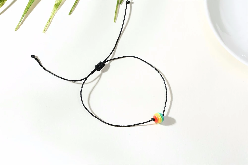 Черный плетеный браслет из радужных бусин, 6 цветов, радужные бусины