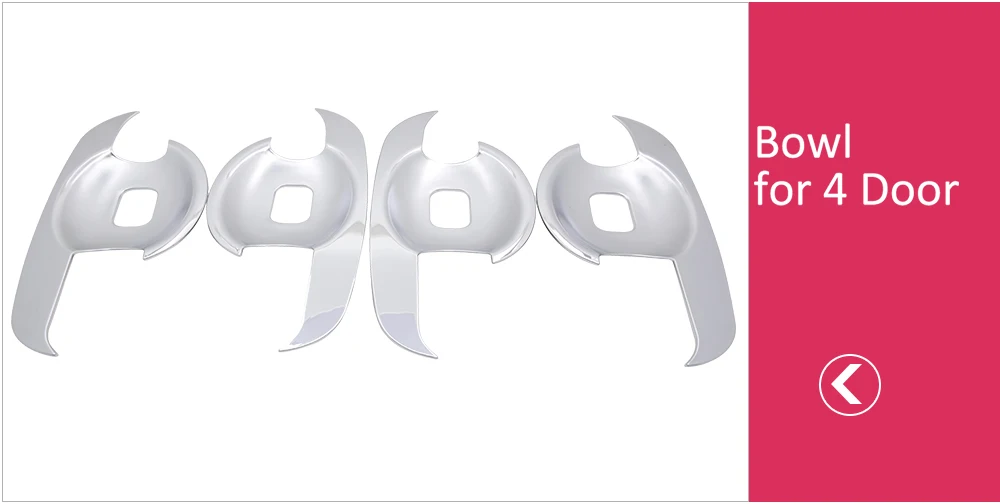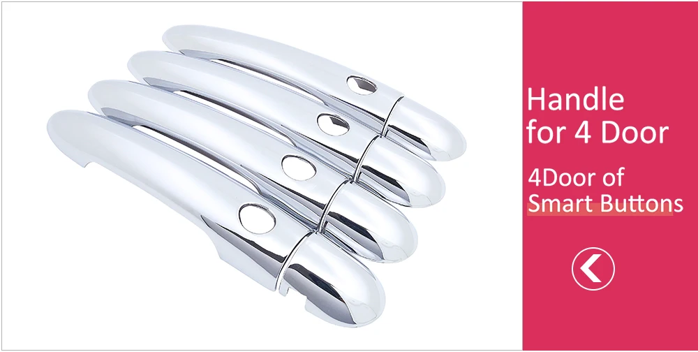 Высококачественная стильная хромированная крышка для дверных ручек для отличной защиты автомобильных дверных ручек. И подчеркнет внешний вид автомобиля. Изготовлен из высококачественного АБС-хромового пластика. Они формовали контуры ручек за пределами автомобиля для достижения пользовательской посадки. Хромированная крышка дверной ручки обеспечивает максимальное царапание дверной ручки. В то же время улучшает внешний вид автомобиля. Инструкции по установке: 1. Очистите свой автомобиль 2. Подтвердите положение предмета, в котором вы смотрите Ваша рука 3. Вставьте двустороннюю ленту 4. Успех! Красивые дверные ручки представлены