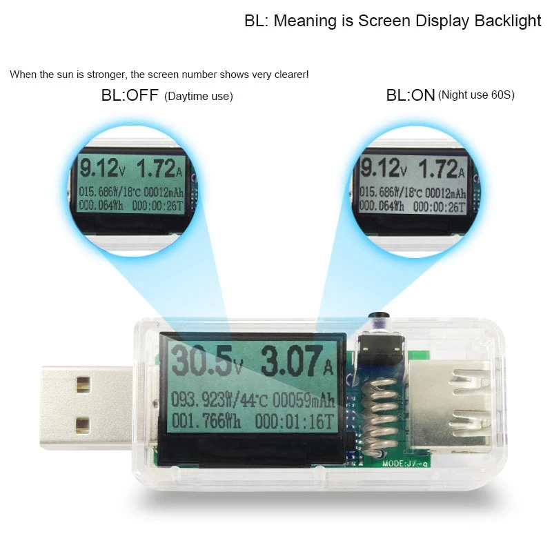 Напряжение Диапазон измерения: 3,60 V ~ 32,5 V Разрешение точность: 0,01 V, сила тока Диапазон измерения: 0.00A ~ 5,00 в Разрешение точность: 0,01 A, Мощность накопленный диапазон: 0 ~ 999999 WH Разрешение точность: 0,001 Вт-ч, диапазон емкости: 0 ~ 999999 мА · ч точность разрешения: 0,001 Ач