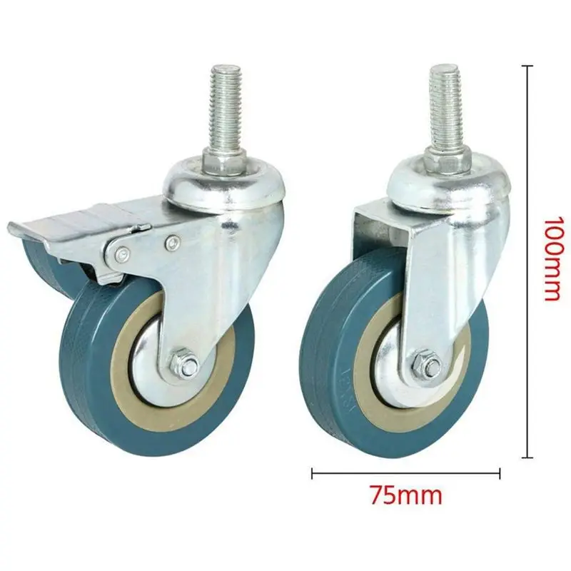 Это набор из четырех сверхмощных поворотных и тормозных болтовых фиксирующих роликов с резьбовым креплением болтов М12 и колесами из ПВХ. Отлично подходит для различных применений, от «сделай сам» до промышленного применения (магазины, школы, дома и больницы).