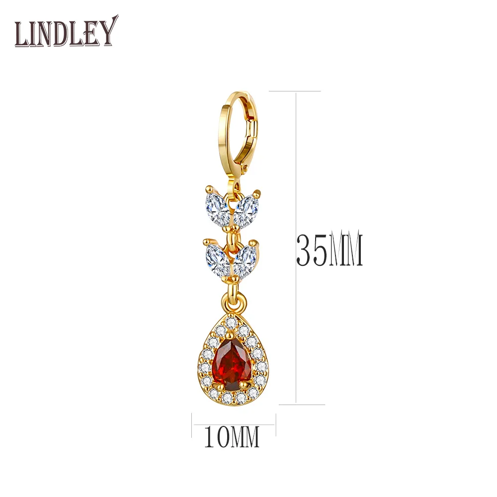 Женские серьги в форме сердца LINDLEY, розовое золото 585 пробы, серьги с красным цирконием, роскошные свадебные украшения, 2020