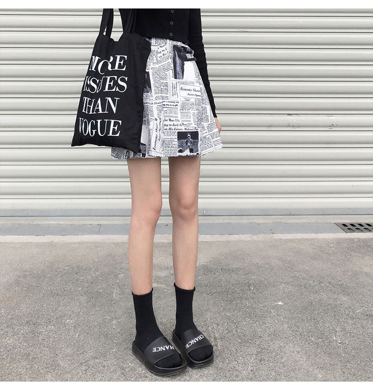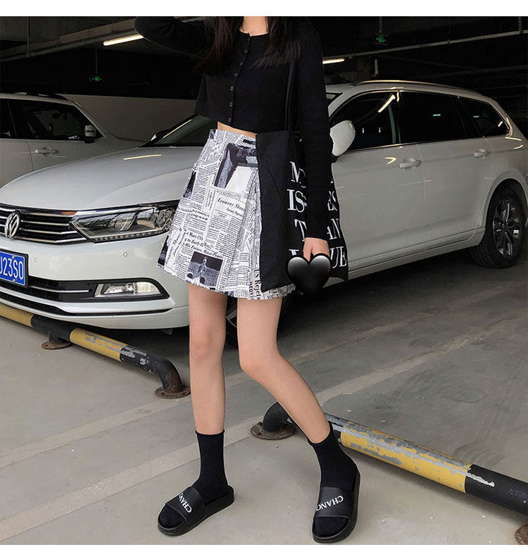 SML женские летние юбки 2020 консервативный Стиль Высокая талия трапециевидная юбка Газетный дизайн печатная мини юбка женская