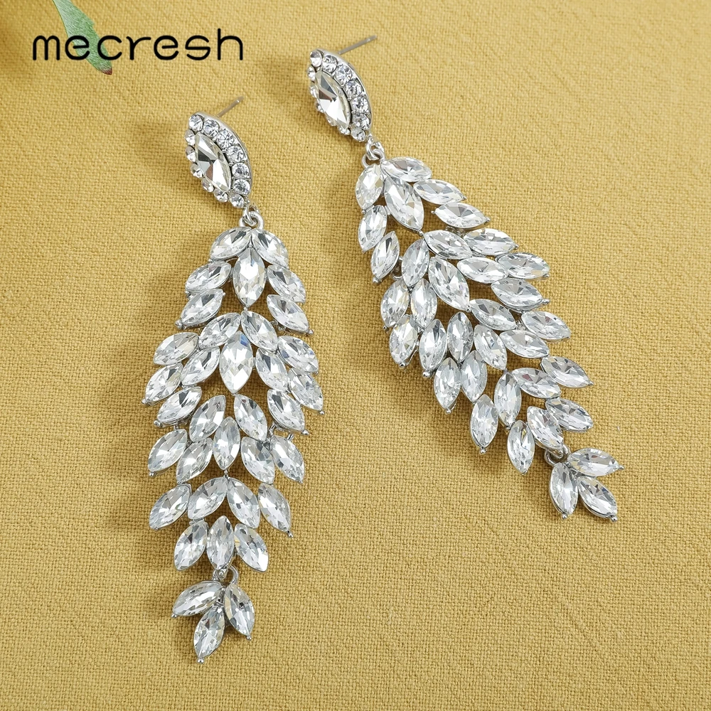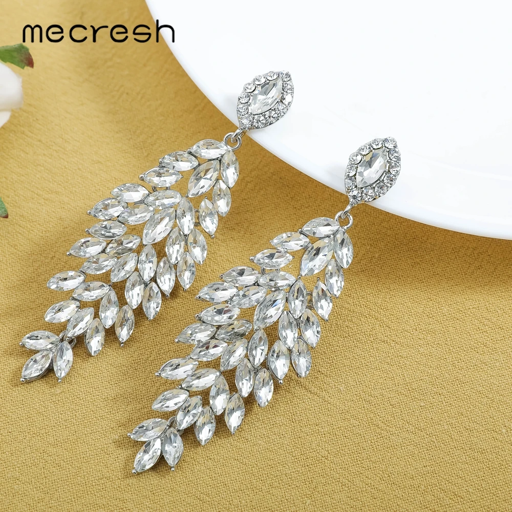 Женские Висячие сережки Mecresh, сережки с кристаллами, Сережки для невесты 2020, серебристые Сережки для невесты, MEH1738