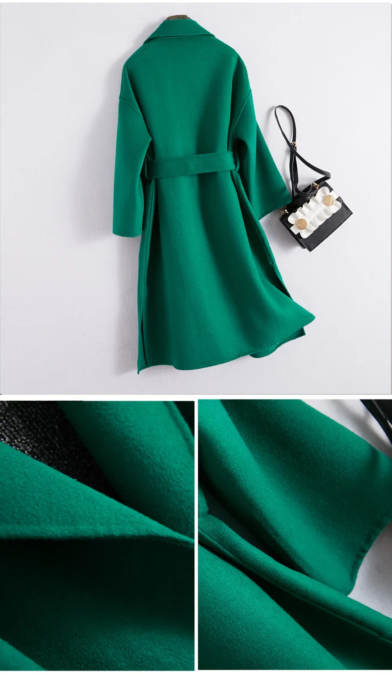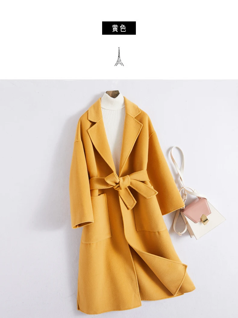 Женское шерстяное пальто с длинным рукавом бежевое или черное однотонное