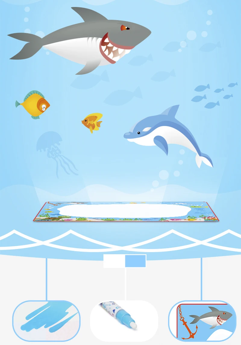 Океанский магический водяной холст, доска для письма 80*60, граффити, коврик для воды, коврик для рисования, развивающие игрушки для детей