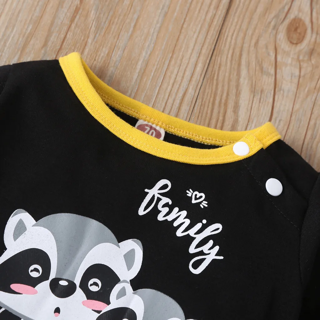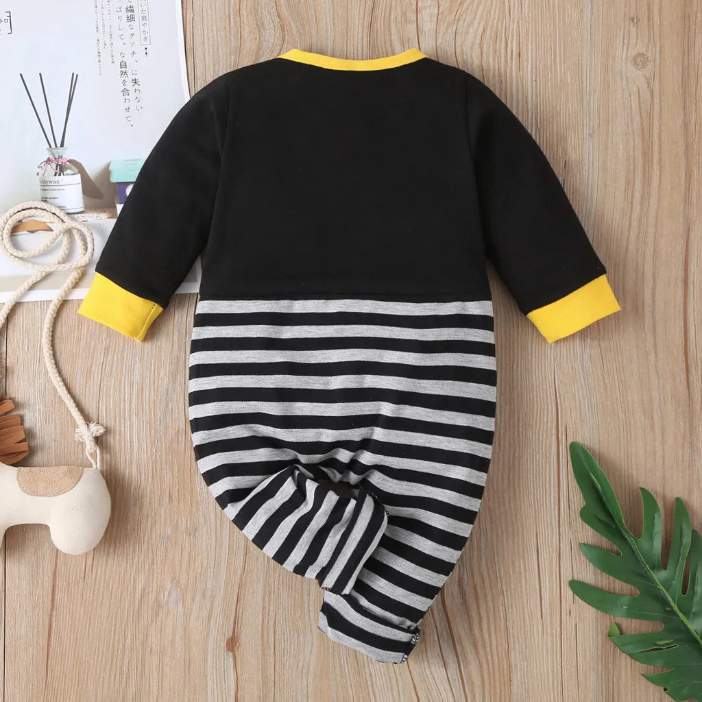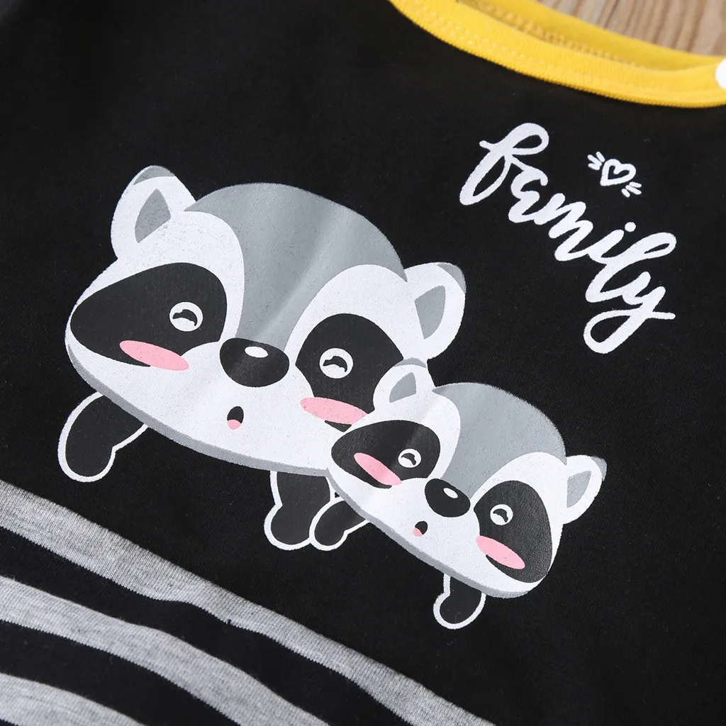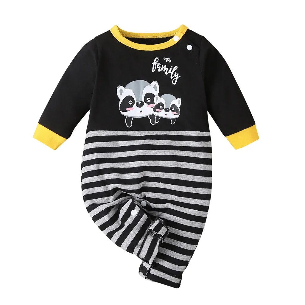 New baby jumpsuit long-sleeved spring and autumn models cartoon little raccoon letter printed striped robe romper детские вещи 5