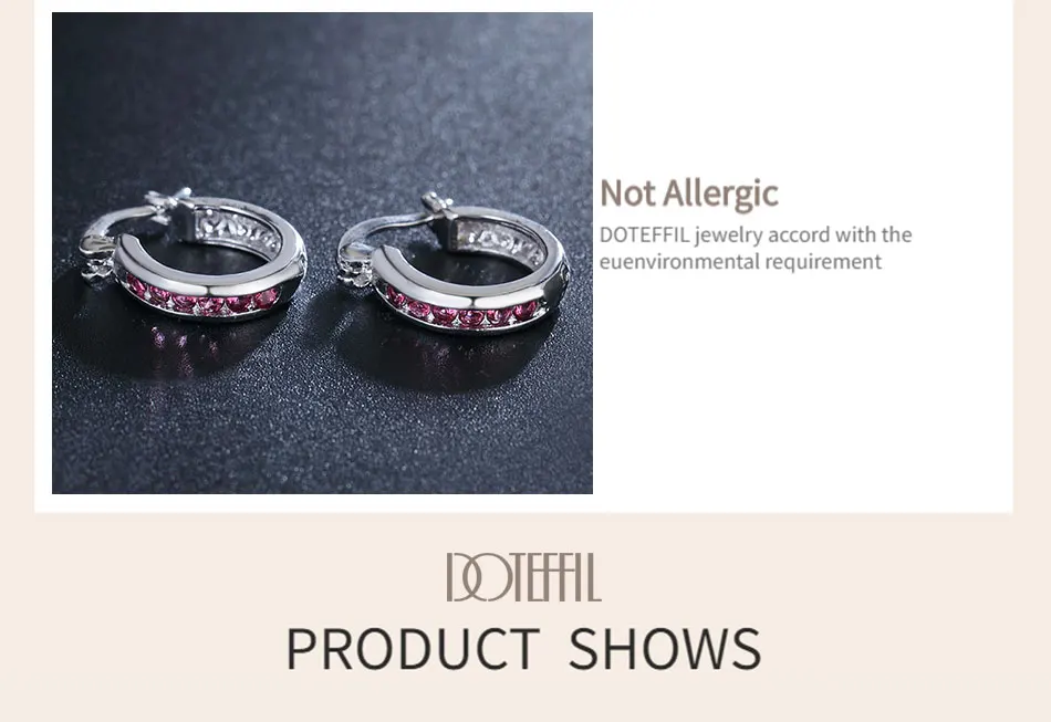 DOTEFFIL серебро 925 пробы белый/зеленый/красный/розовый/фиолетовый/синий круглые серьги-кольца с цирконом для женщин Свадебные ювелирные изделия для помолвки