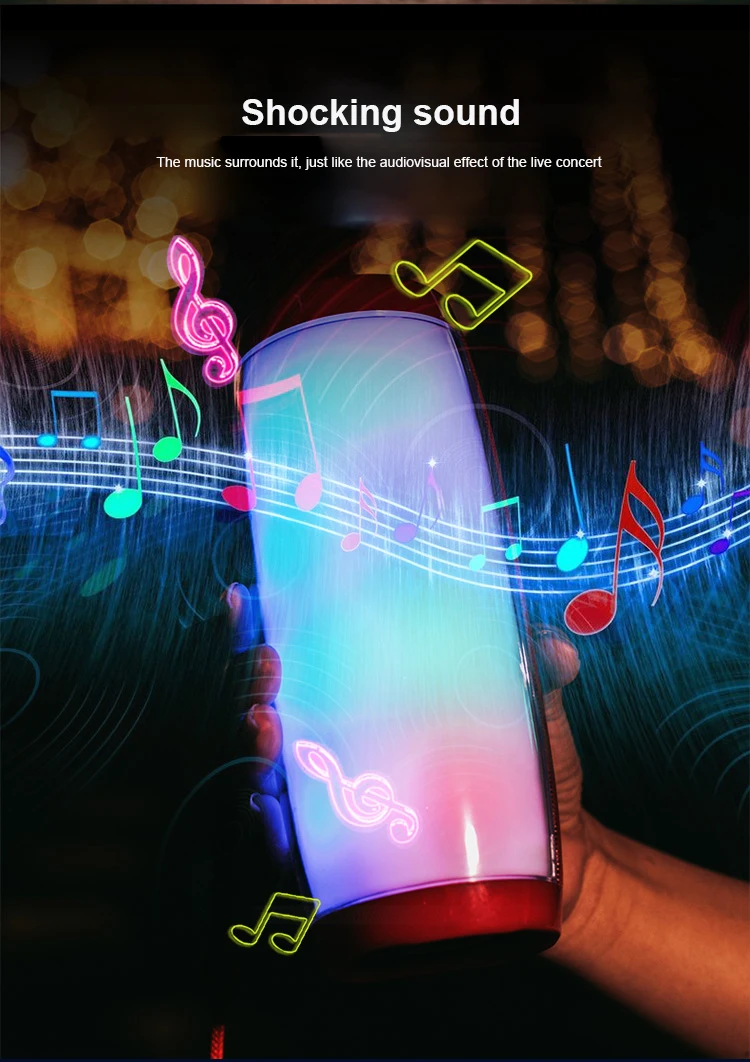 1. Дизайн волшебной акустической системы, удивительная двойная мощность Встроенная конструкция низкочастотного усилителя, средняя-Низкая частота более мощная, с лучшим качеством звучания; 2. Усовершенствованный чип декодирования аудио Bluetooth Поддержка мобильных телефонов, планшетов, телевизоров и других устройств Bluetooth для воспроизведения музыки в парах; Расстояние передачи Bluetooth больше 10 метров; 3. Поддержка функции вызова в режиме громкой связи, встроенный высокочувствительный микрофон, благодаря чему мобильный телефон звонков получают несравненное и приятное удовольствие от звонков 4. Поддержка воспроизведения музыки на U-диске и TF-карте Декодирование MP3, поддержка полноценного воспроизведения MP3 формата; 5. FM автоматически ищет и хранит станции 6. Встроенный FM радиомодуль, который может автоматически искать и хранить радиостанции, экономя время и силы; Поддержка аудиовхода AUX, обеспечивает компьютерный динамик Светодиодный Bluetooth-динамик, звуковые эффекты HIFI уровня и наслаждайтесь музыкой Демонстрация покупателя