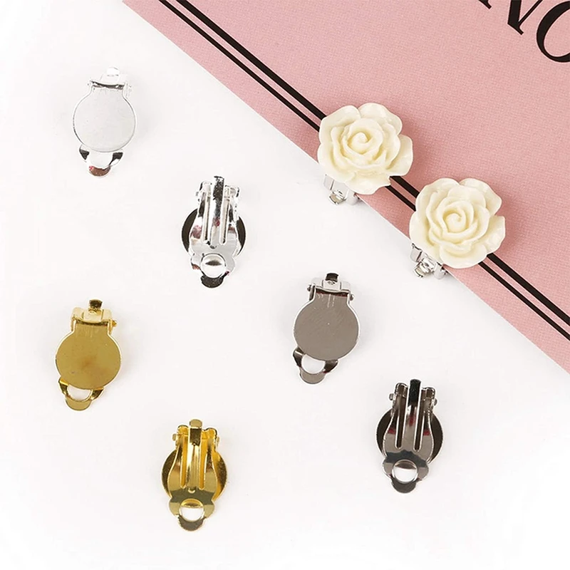 50 шт. (25 пар) клипсы для сережек, основа для сережек, плоская задняя часть, Круглый лоток, пустая установка, не нужно, ювелирное изделие для ушей