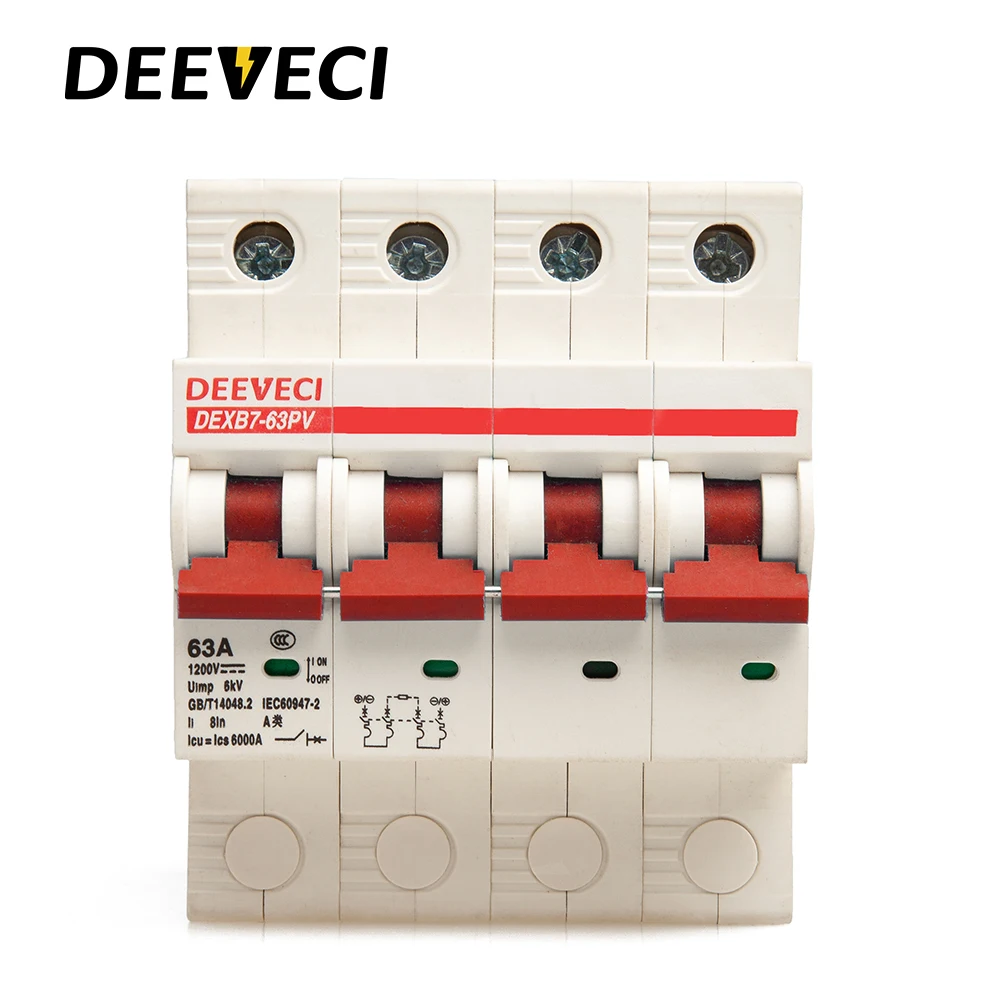 DEEVECI DC Автоматический выключатель это настоящий миниатюрный автоматический выключатель постоянного тока он не имеет положительных или отрицательных полюсов. Вы можете подключить его к любым полюсам, Применить к номинальному напряжению 900 в или меньше, Применить к номинальному току 63А или меньше. Он в основном используется для перегрузки и защиты от короткого замыкания в DC распределительной системе оборудования и электрического оборудования. Он может быть широко использован в электрических, почтовых, дорожных, горнодобывающих предприятий и различных видах полей.