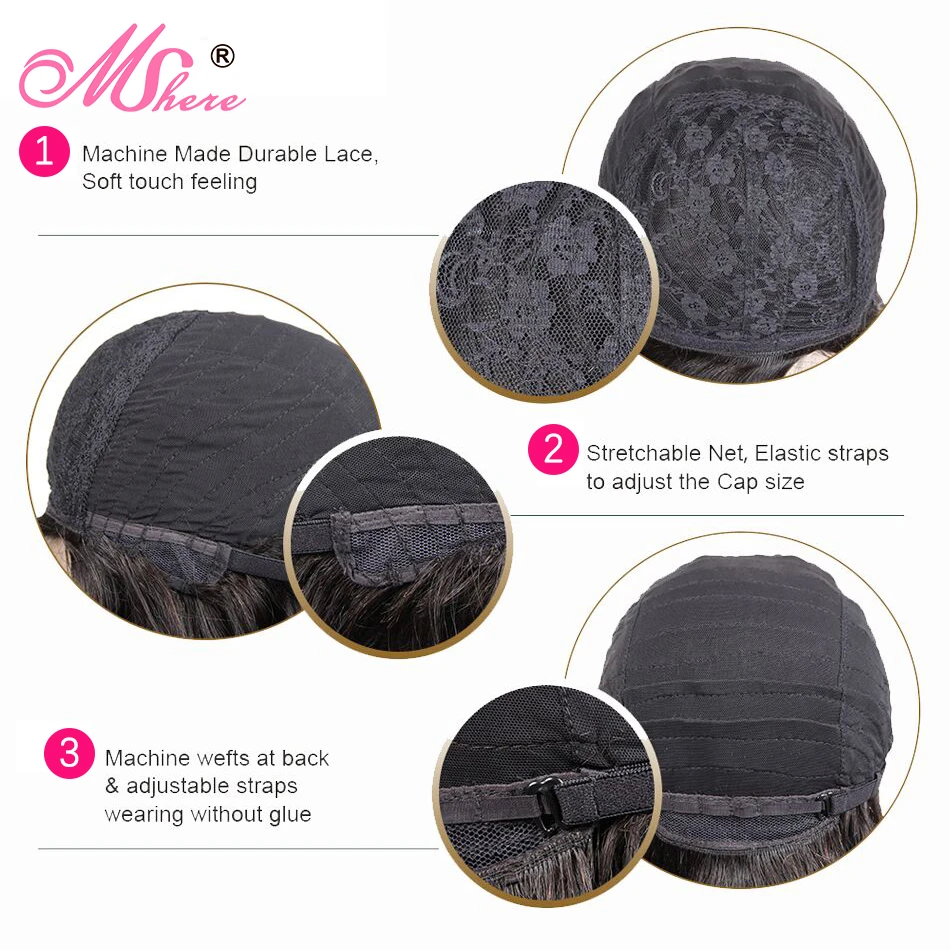 Гладкий бразильский парик из коротких человеческих волос 100% Реми красный для